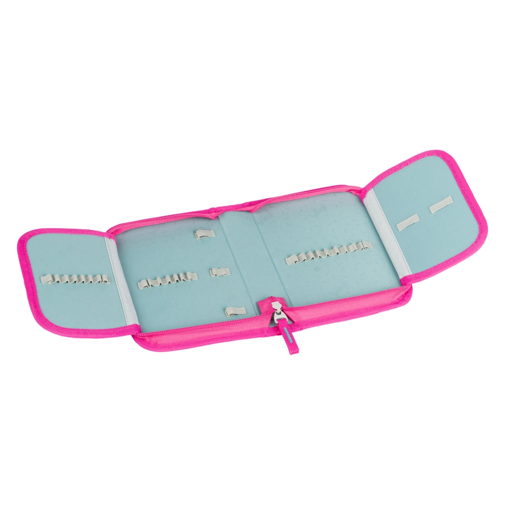 A szettet kiegészíti a töltet nélküli egyszintes tolltartó minőségi YKK cipzárral, apró zsebbel és órarend-ablakkal, amely teljesen kihajtható a tökéletes áttekinthetőség érdekében. A praktikus zsák karabinerrel könnyen a hátizsákra rögzíthető, és használható váltócipőhöz, tornacuccokhoz vagy szabadidős apróságokhoz.