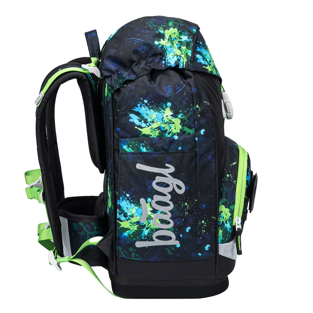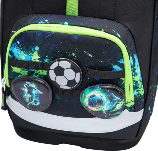 A könnyű és ergonomikus BAAGL Airy Plus Foci iskolai szett egy tágas, növekvő hátpanellel rendelkező hátizsákot, egy egyszintes tolltartót és egy praktikus tornazsákot váltócipőhöz vagy testneveléshez tartalmaz. Az újrahasznosított, vízlepergető anyagból készült hátizsák kevesebb mint 1,2 kg, fényvisszaverő elemekkel, mágneses záródással és hőszigetelt uzsonnás zsebbel rendelkezik. Ideális választás első osztálytól sportos, focis dizájnnal.