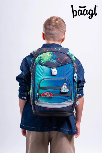 A BAAGL Airy Plus Chill iskolai szettet 1. osztálytól ajánljuk. Az ergonomikus hátizsák merev aljjal és integrált alumínium merevítéssel védi a hátat, míg a növekvő GROW háttámasz-rendszer három méretre állítható – így a hátizsák „együtt nő” a gyermekkel. A mágneses fedél önmagától záródik, megkönnyítve a mindennapi használatot.