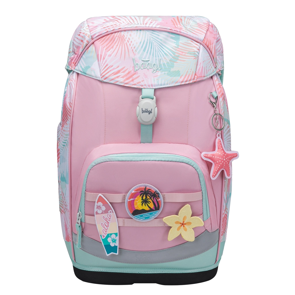 A jól átgondolt rendszerezés része a fő rekesz rendszerezővel, füzetvédő műanyag lapok, praktikus fedél cipzáras zsebbel és elülső termo zseb az uzsonnának. A modern megjelenést cserélhető kitűzők (Baaglies) és feltűnő fényvisszaverő elemek egészítik ki. Az egyszintes tolltartó YKK márkájú cipzárral teljesen kihajtható, rendelkezik apróságoknak való zsebecskével, órarend-ablakkal és erős gumipántokkal a háromszög ceruzákhoz is (töltet nélkül szállítva). A zsinóros zsák ideális váltócipőhöz vagy testneveléshez, a kötény véd alkotás közben, a pénztárca pedig biztonságban tartja a zsebpénzt.
