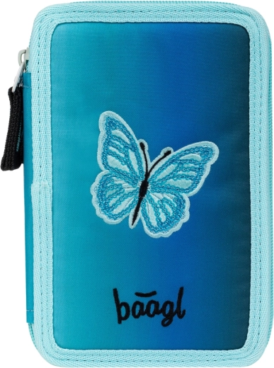 Extra tágas, háromszintes BAAGL tolltartó Butterfly mintával, amely maximális rendezettséget, áttekinthető elrendezést és megbízható YKK cipzárokat kínál. A vastagabb színes ceruzákhoz és filcekhez való gumipántoknak és a megerősített gerincnek köszönhetően mindennap könnyen használható. A Global Recycled Standard (GRS) előírásainak megfelelően készült. A tolltartó töltet nélkül kapható.