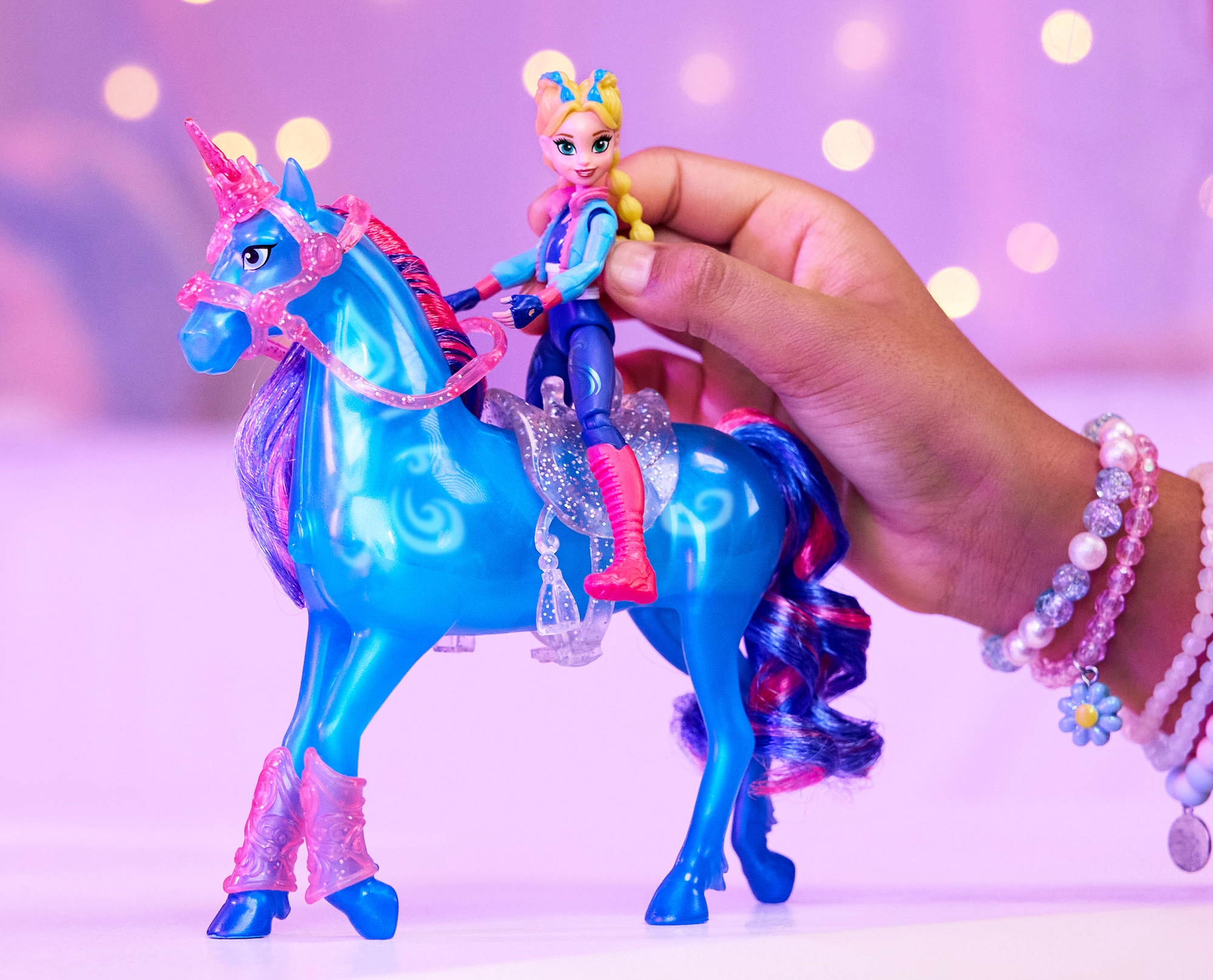 Az Isabel baba (kb. 11 cm) 7 artikulációs ponttal rendelkezik a valósághű pózokhoz nyeregben és edzés közben. A csomag 3 edzőkiegészítőt tartalmaz, köztük trófeát és díszszalagot az unikornis számára, amelyek minden sikert megjutalmaznak. A készlet kombinálható a sorozat további szereplőivel és unikornisaival a gyűjtemény bővítéséhez.