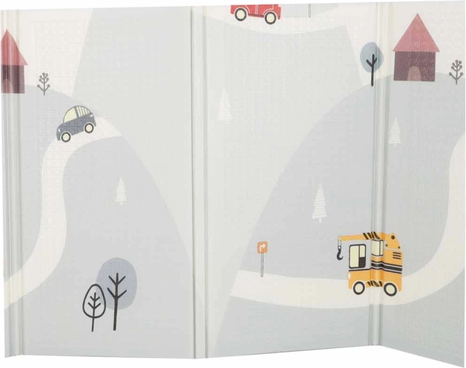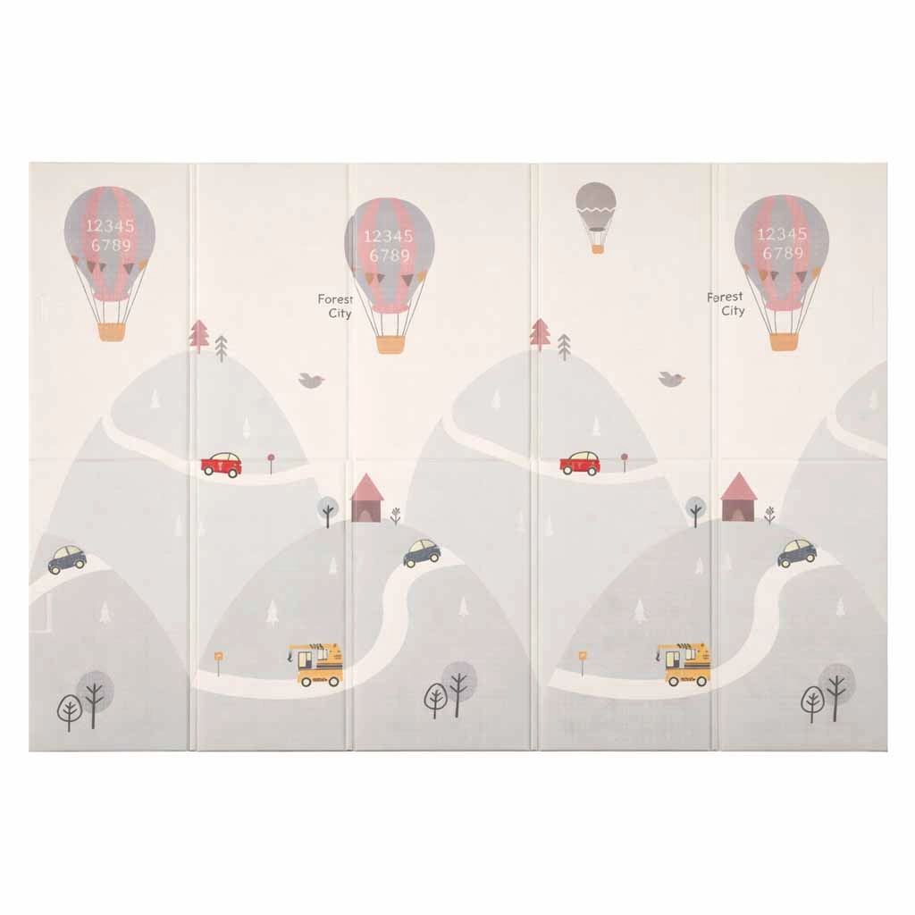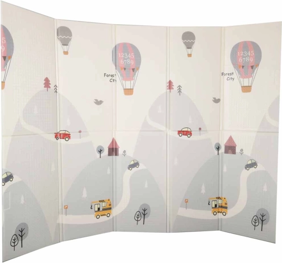 Ez a minőségi habszivacs szőnyeg a biztonságos és kényelmes mindennapi játékhoz készült. A rugalmas, puha réteg hatékonyan tompítja az eséseket, ugrásokat és bátortalan első mozdulatokat, míg a csúszásgátló, finoman texturált felület stabilitást ad a padlón. A kétoldalas minta egyik oldalán utcák és kisváros motívum, a másikon finom, pasztell tájképi minta serkenti a képzeletet, miközben nem zavarja a modern enteriőrt.