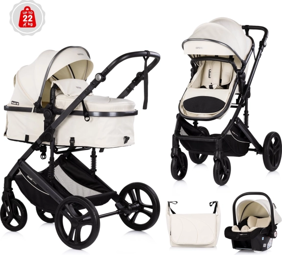Elegáns, 2 az 1-ben kombi babakocsi újszülött kortól 22 kg-ig, amely egyesíti a mózeskosarat és a sportrészt. Könnyű, rugózott vázzal, nagy kerekekkel a sima haladásért, előre és hátra néző üléssel, állítható tolókarral és tágas kosárral. Megfelel az EN1888-1/2 szabványoknak a mindennapi séták biztonsága és kényelme érdekében.
