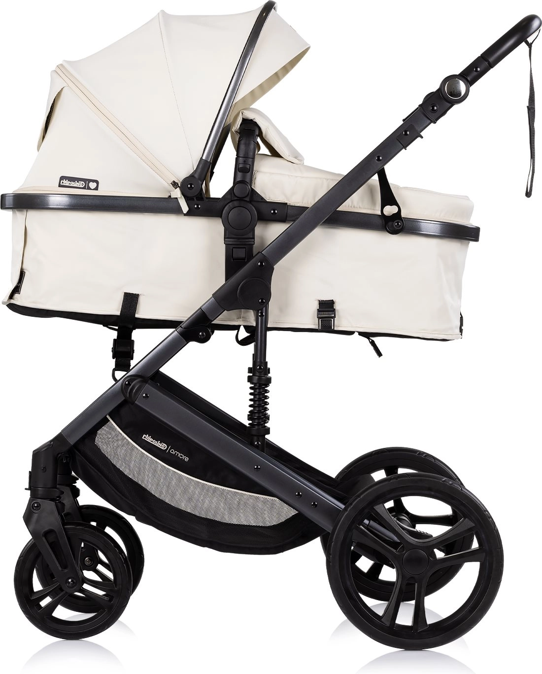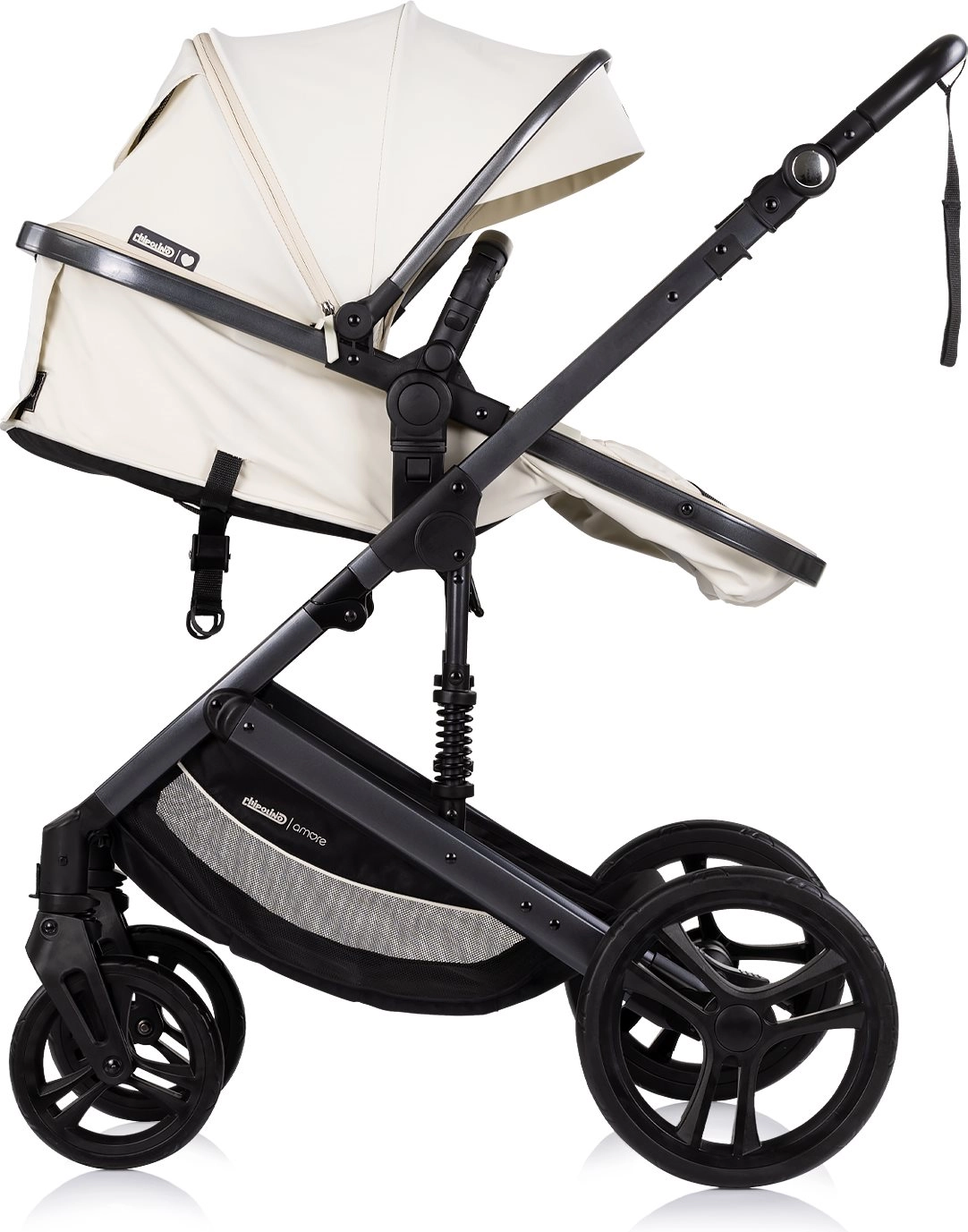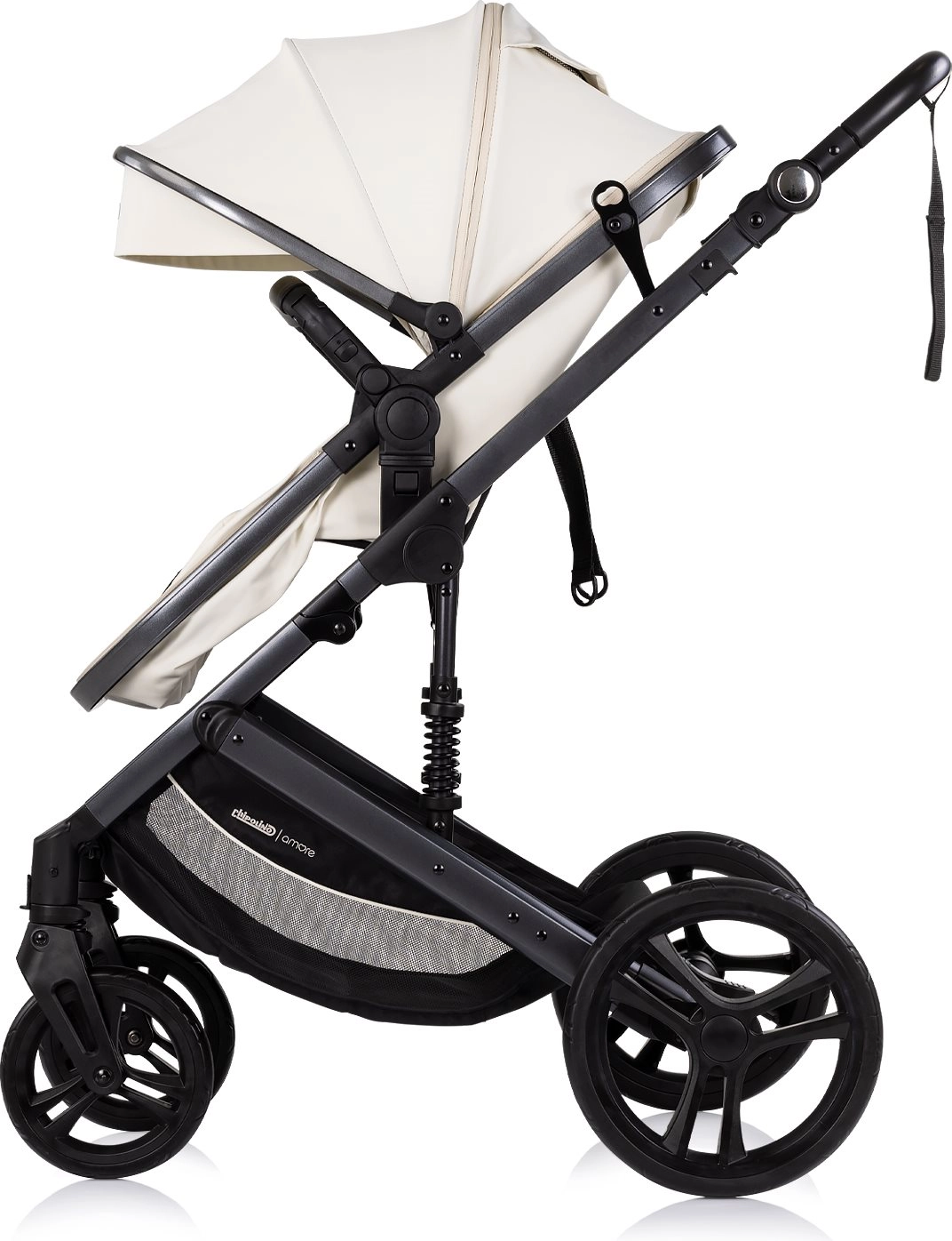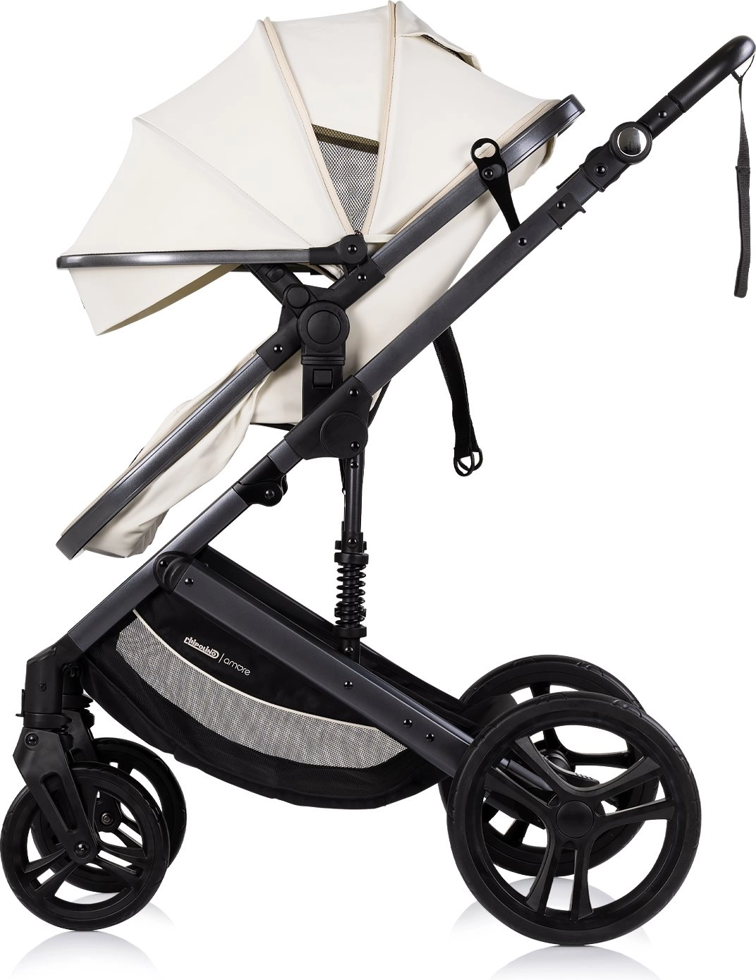 A Chipolino Amore 2 az 1-ben Cashmere árnyalatban sokoldalú babakocsi, amelyet könnyedén átválthatsz sportrészről újszülött mózeskosárra. A rugózott váznak és a nagy, terepre is alkalmas kerekeknek köszönhetően városban és könnyebb terepen is sima, kényelmes utazást biztosít. Az állítható kupola napellenzővel óvja a babát, míg az 5 pontos, párnázott biztonsági öv és a levehető karfa növeli a biztonságot.