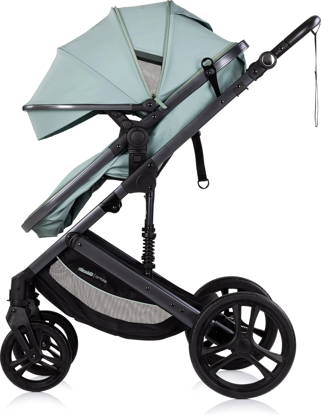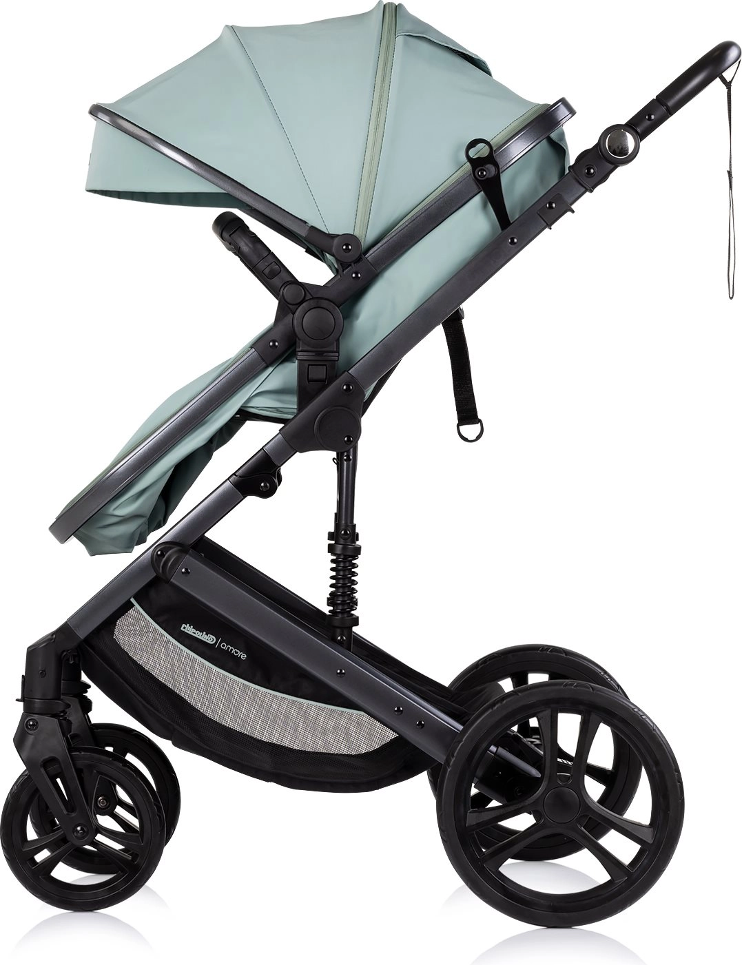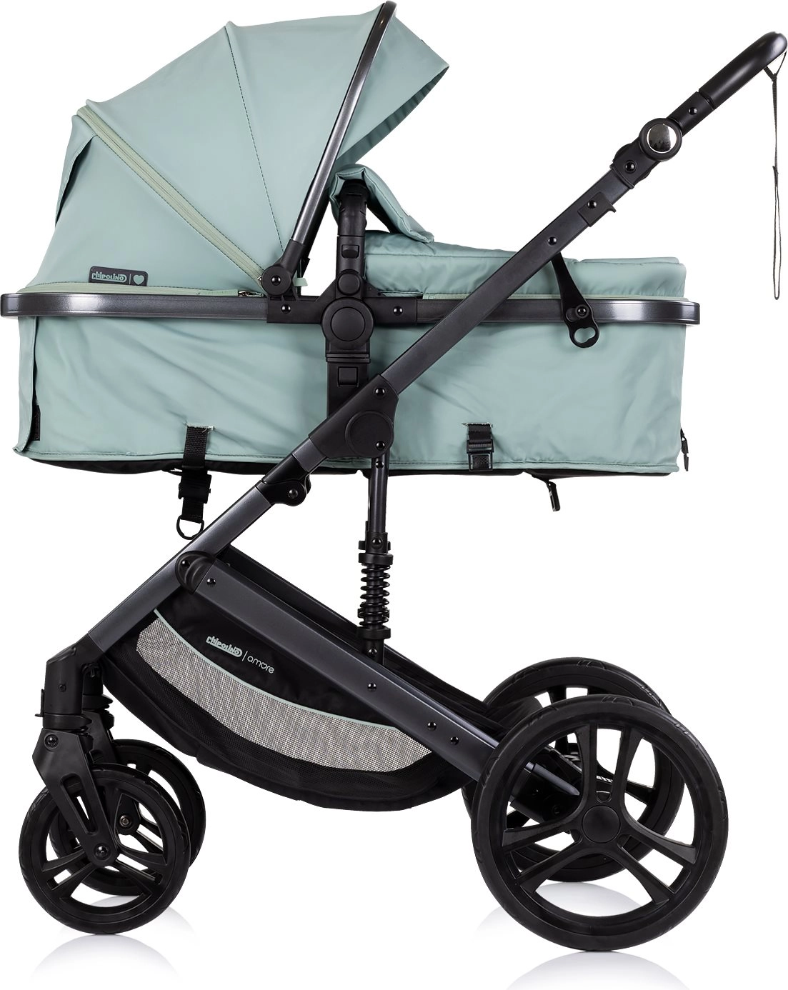 Elegáns 2 az 1-ben CHIPOLINO AMORE babakocsi Matcha színben, amely egyesíti a mély mózeskosarat és a sportülést egyben. Könnyű vázzal beépített rugózással, ülés előre és hátra néző pozícióval, állítható háttámlával és tágas kosárral rendelkezik. A biztonságról 5 pontos öv és megbízható fék gondoskodik.