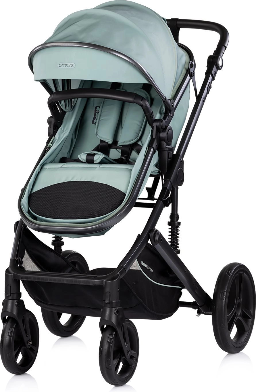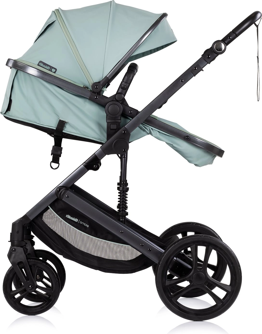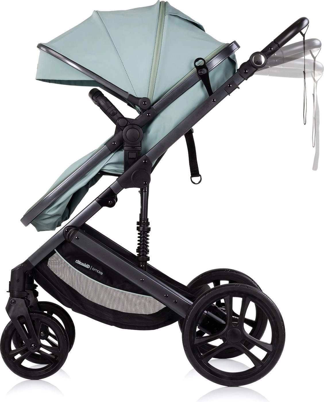 Elegáns 2 az 1-ben CHIPOLINO AMORE babakocsi Matcha színben, amely egyesíti a mély mózeskosarat és a sportülést egyben. Könnyű vázzal beépített rugózással, ülés előre és hátra néző pozícióval, állítható háttámlával és tágas kosárral rendelkezik. A biztonságról 5 pontos öv és megbízható fék gondoskodik.