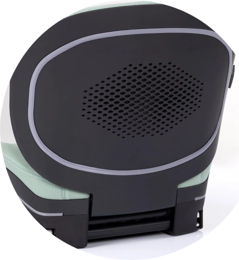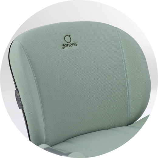 Az ergonomikusan formált ülés, a puha párnázás és a karfák a hosszabb utak során is kényelmet nyújtanak. A levehető, légáteresztő háttámla lehetővé teszi az ülés az aktuális igényekhez való igazítását. A Matcha árnyalatú design-t elegáns fémes részletek egészítik ki, prémium megjelenést kölcsönözve.