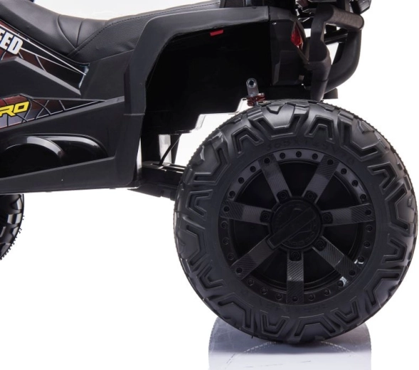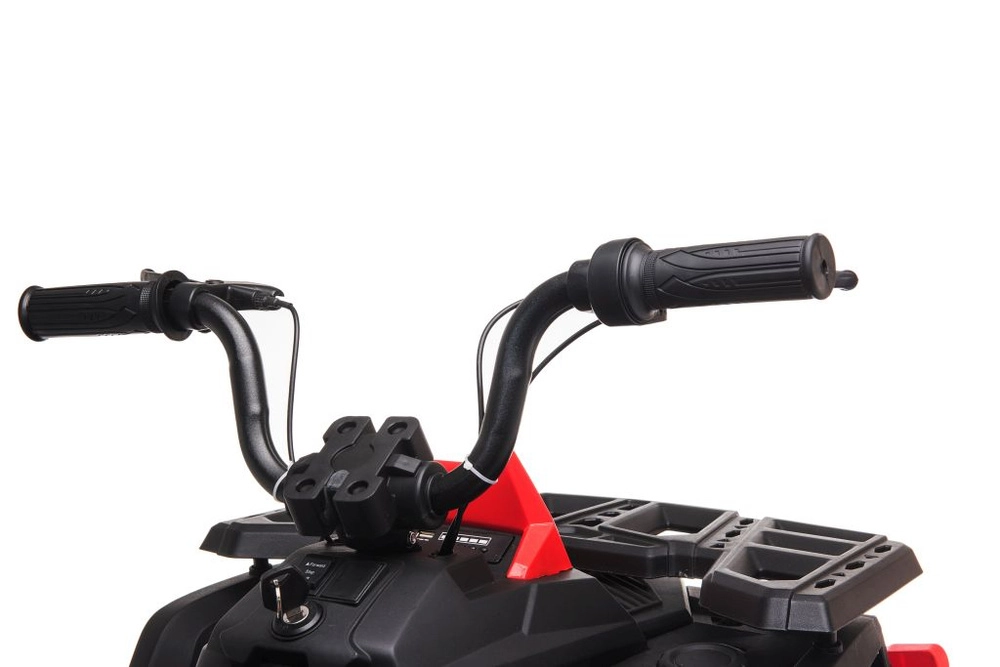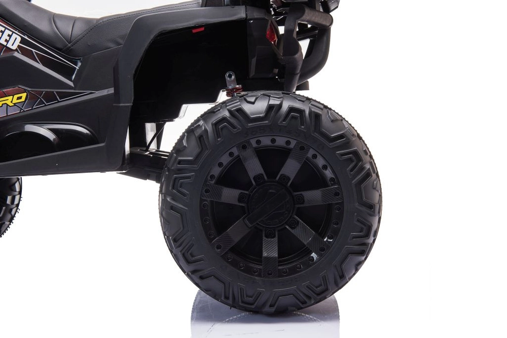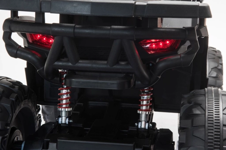 Masszív gyermek elektromos négykerekű motor széles terepgumikkal, stabil felépítéssel és valósághű LED világítással, amely rengeteg szórakozást nyújt a kertben és szilárd burkolaton is. Egyszerű kormányvezérlés, kényelmes ülés háttámasszal és előre/stop/hátra kapcsoló a biztonságos és élvezetes vezetési élményért.