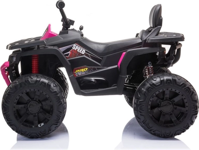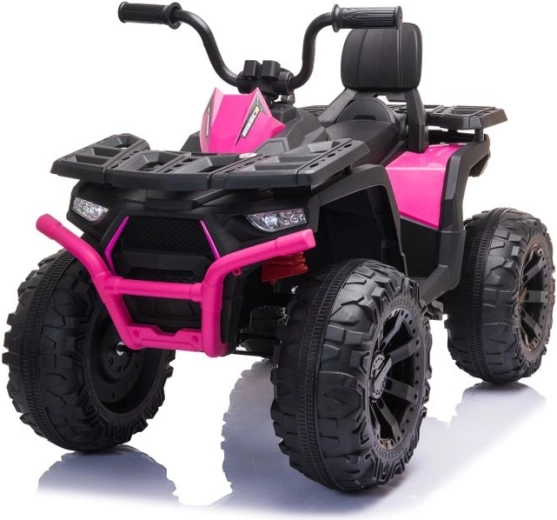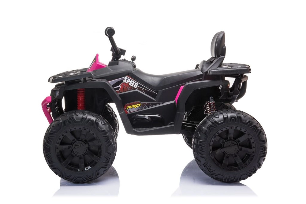 Ez a gyermek elektromos quad az attraktív off-road megjelenést kényelmes és biztonságos vezetést támogató, praktikus elemekkel ötvözi. A masszív felépítés, a feltűnő rózsaszín részletek és a széles futófelületű kerekek kiváló tapadást biztosítanak szilárd és enyhén egyenetlen felületen is. A kezelés intuitív – csak ülj fel, fogd meg a kormányt, és irány a kaland.
