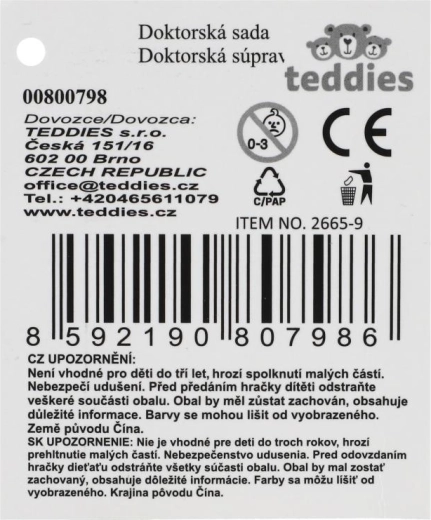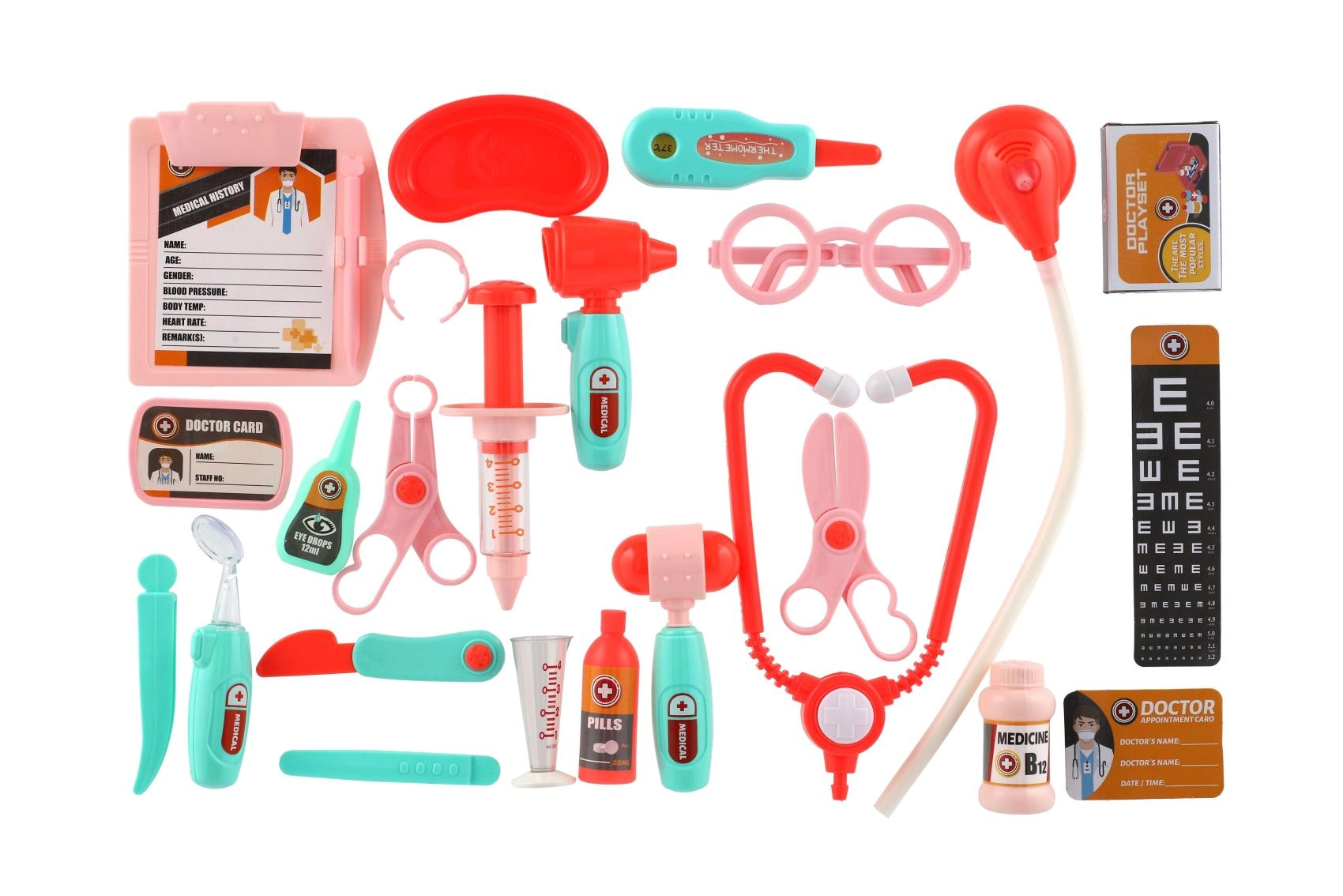 Sztetoszkóp, injekció, otoszkóp, lázmérő és további kiegészítők teszik lehetővé a gyerekeknek a „páciensek” teljes körű vizsgálatát és ellátását.