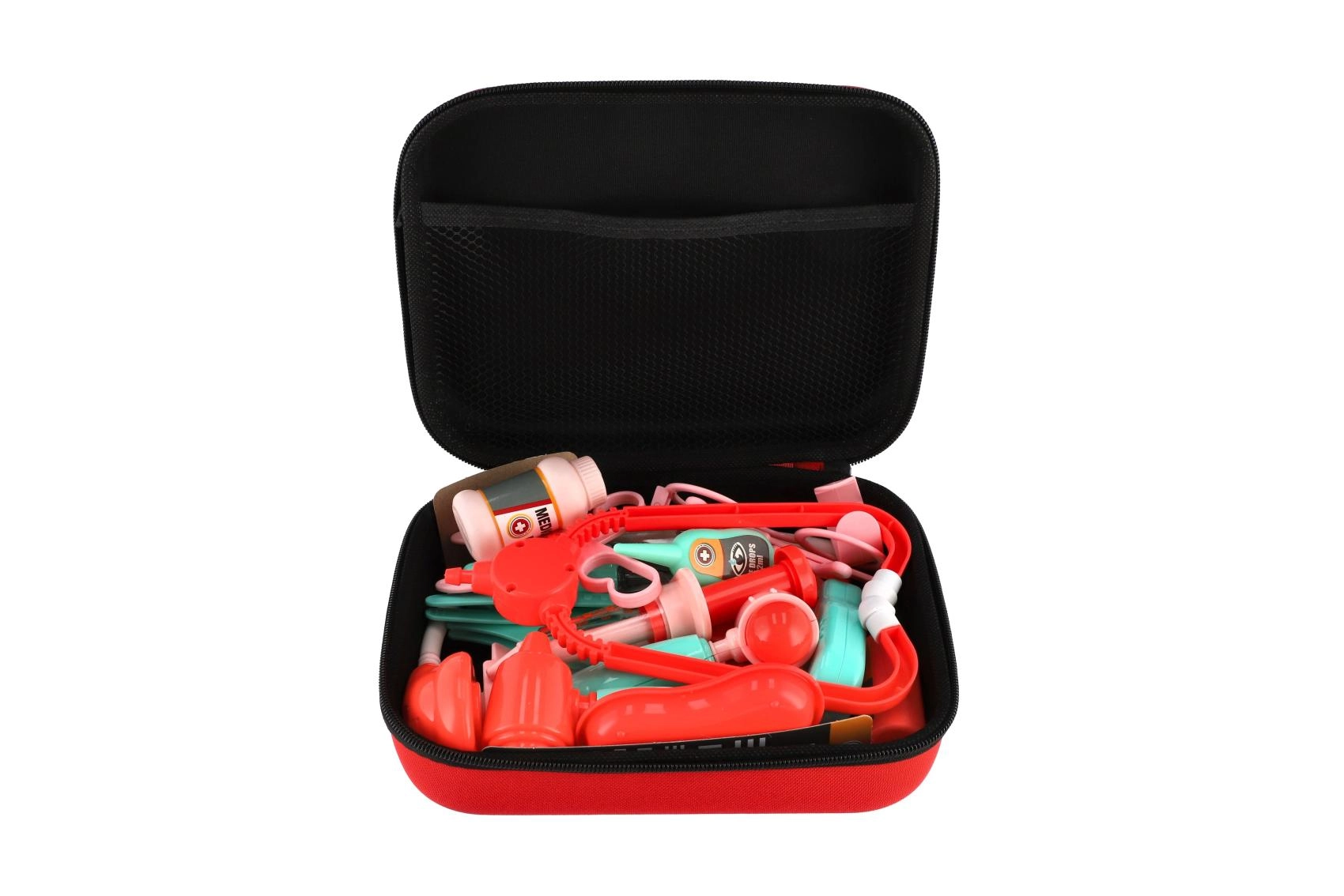 Szórakoztató gyermekorvosi készlet masszív bőröndben, amely mindent tartalmaz a rendelős játékhoz. A gyerekek kipróbálhatják a páciensek vizsgálatát, az apró „sérülések” ellátását és a lázmérést is. A praktikus bőrönd gondoskodik a rendről és a könnyű hordozhatóságról, míg a gazdag tartozékkészlet fejleszti a fantáziát és a szociális készségeket, valamint segít csökkenteni a félelmet az orvostól.
