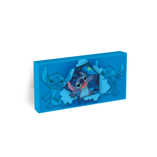 Az eredeti világító Lilo & Stitch kép minden szobát varázslatos hellyé változtat. A finom kék háttérvilágítás kiemeli a részleteket, varázslatos hangulatot teremt, és örömet szerez kicsiknek és nagyoknak. A 2× AA elemmel működő tápellátásnak köszönhetően bárhová könnyedén elhelyezhető – kábelek és konnektor nélkül.