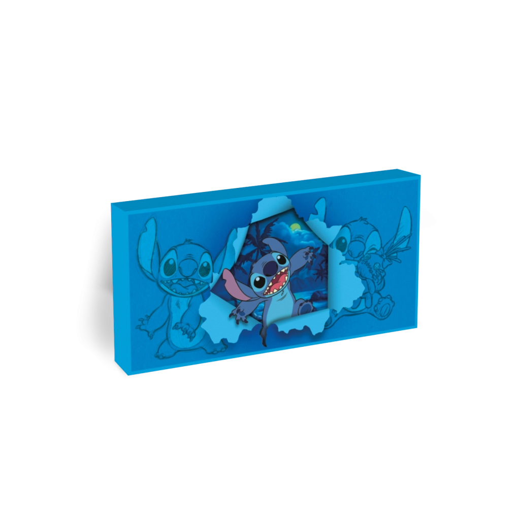 Könnyű és masszív kialakításának köszönhetően a kép egyszerűen felakasztható a falra vagy elhelyezhető a polcon. Ideális éjjeli fényként, gyűjtői dekorációként és eredeti ajándékként a Lilo & Stitch rajongóknak.