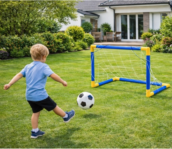 Könnyű és stabil gyerek focikapu teljes felszereléssel – labda, pumpa és háló – vidám edzéshez otthon és a szabadban. Egyszerű összeszerelés, strapabíró műanyag csövek és kompakt méretek, amelyek támogatják a mozgást, koordinációt és a pontos lövéseket.