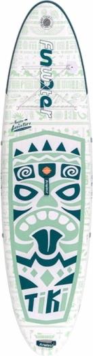 A FUNWATER Tiki felfújható paddleboard kiváló választás kezdőknek és haladóknak egyaránt. A 320 × 83 × 15 cm-es méreteknek köszönhetően nagyfokú stabilitást nyújt, miközben a levehető uszonyok javítják az iránytartást és a manőverezhetőséget. A csúszásgátló EVA betét biztos lépést ad még nedves felületen is – ideális nyugodt evezésekhez, fitneszhez vagy jógához.