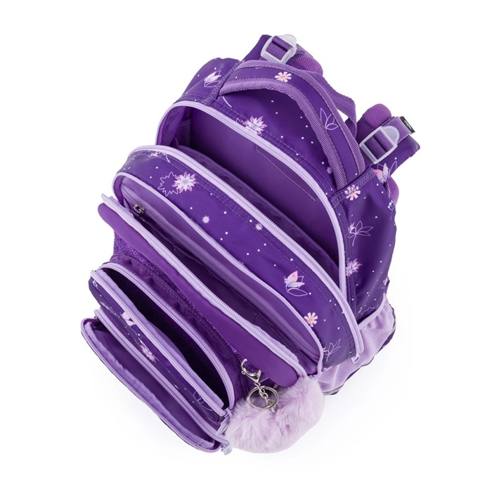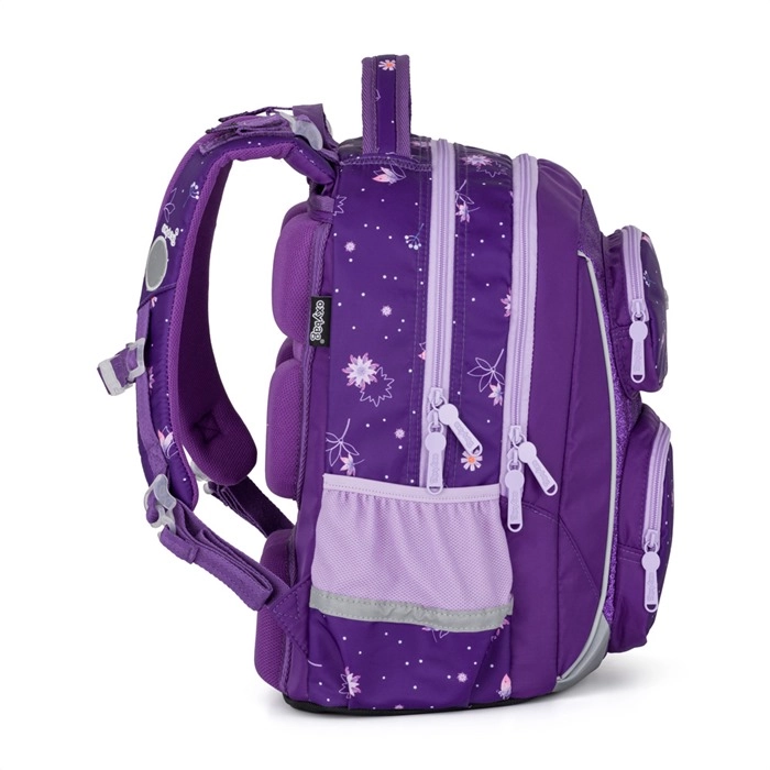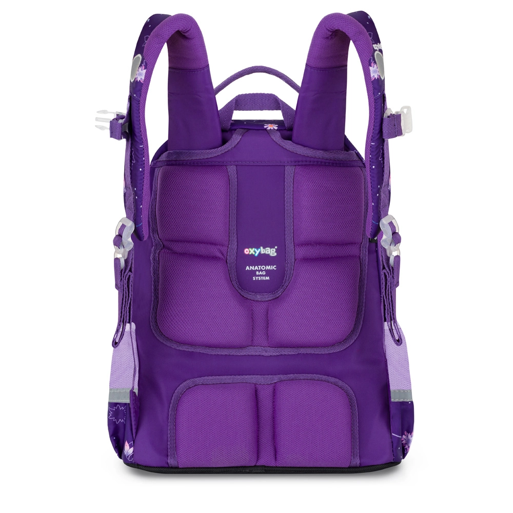 Az OXY Jumper Flowers iskolai szett a kényelmes mindennapi viselésre és az iskolai felszerelések áttekinthető rendszerezésére készült. A két tágas rekesz elfértet tankönyveket és füzeteket, az elülső zseb ideális az uzsonnás doboznak, az oldalsó hálós zsebek pedig a palackot tartják mindig kéznél. Az ergonomikusan formált hátpanel és a rugózott vállpántok mellkaspánttal eloszlatják a terhet és növelik a kényelmet.