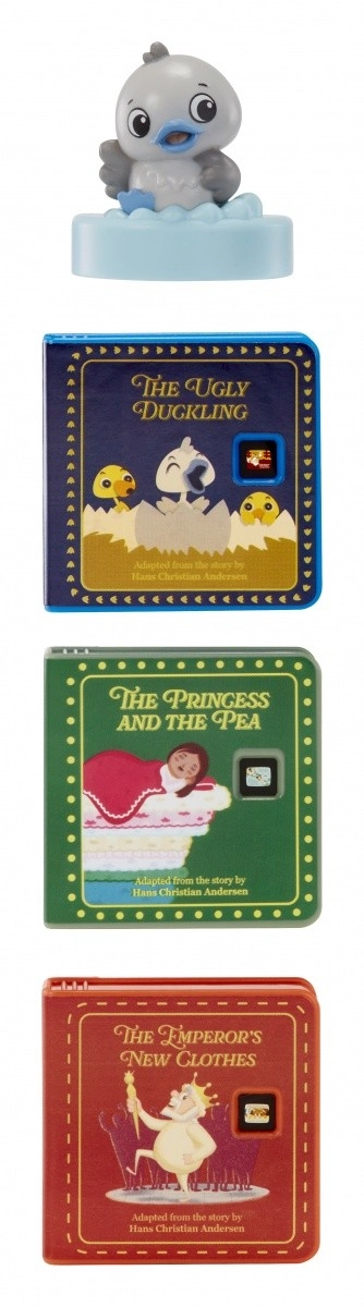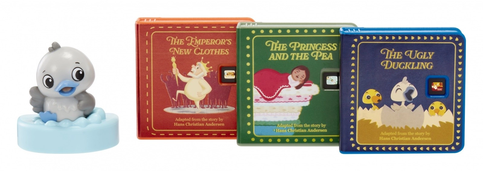 A csomagban 3 klasszikus mese található: A rút kiskacsa, A borsószem hercegkisasszony és A császár új ruhája, valamint egy aranyos kacsa figura A rút kiskacsából, amely lámpa módban további fényhatásokat hoz létre. A bővíthető mesekönyvtár további, külön megvásárolható címeket kínál. Az ajánlott vetítési távolság 0,6–1,8 m az éles és jól olvasható képhez.