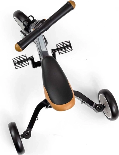 Gyors váltás az alap, pedál nélküli háromkerekű, a pedálos első kerekű háromkerekű és az egyszerű futóbicikli üzemmódok között. Egy jármű több fejlődési szakaszra.