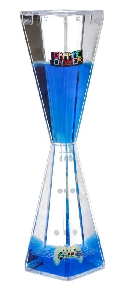 Élvezze a cseppek nyugodt áramlását a homokóra formájú, átlátszó testben. A gél folyadék egyenletesen csorog a felső kamrából az alsóba, lebilincselő hatást keltve, amely segít megnyugtatni az elmét és támogatja a fókuszt. A játékos grafika és a Game Over felirat ideális ajándékká teszi gamereknek és a designos kütyük rajongóinak.