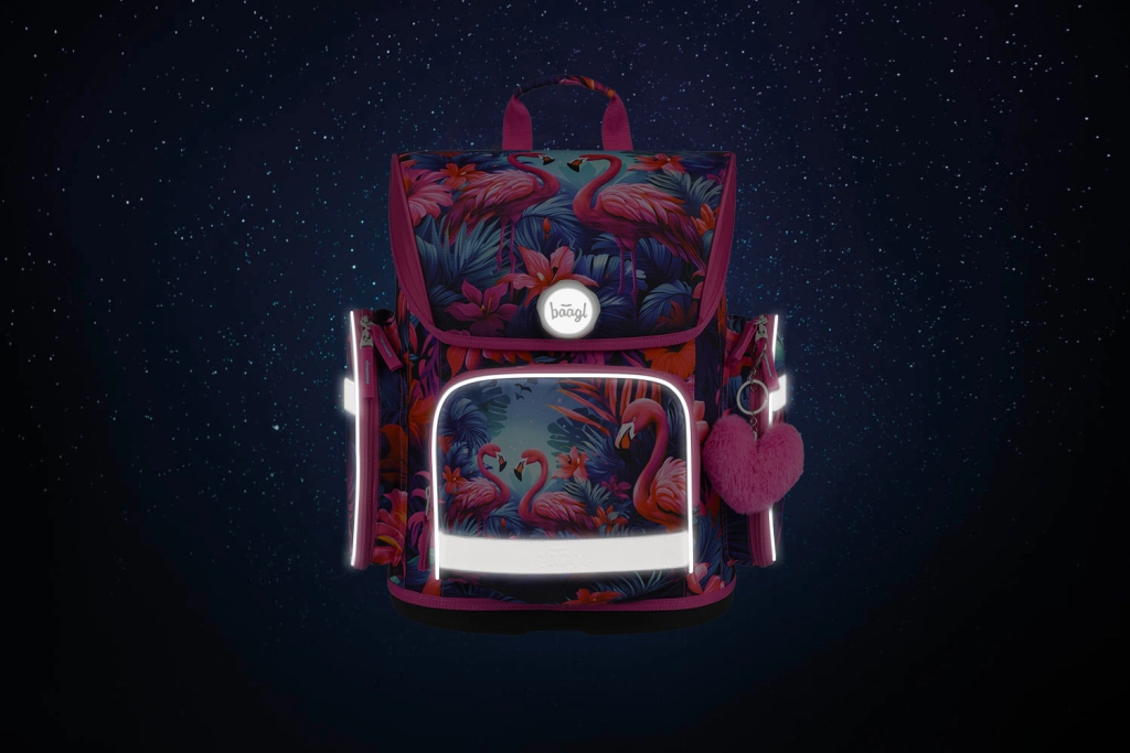 - Egységes dizájn: feltűnő flamingó motívum a harmonikus iskolai stílusért.