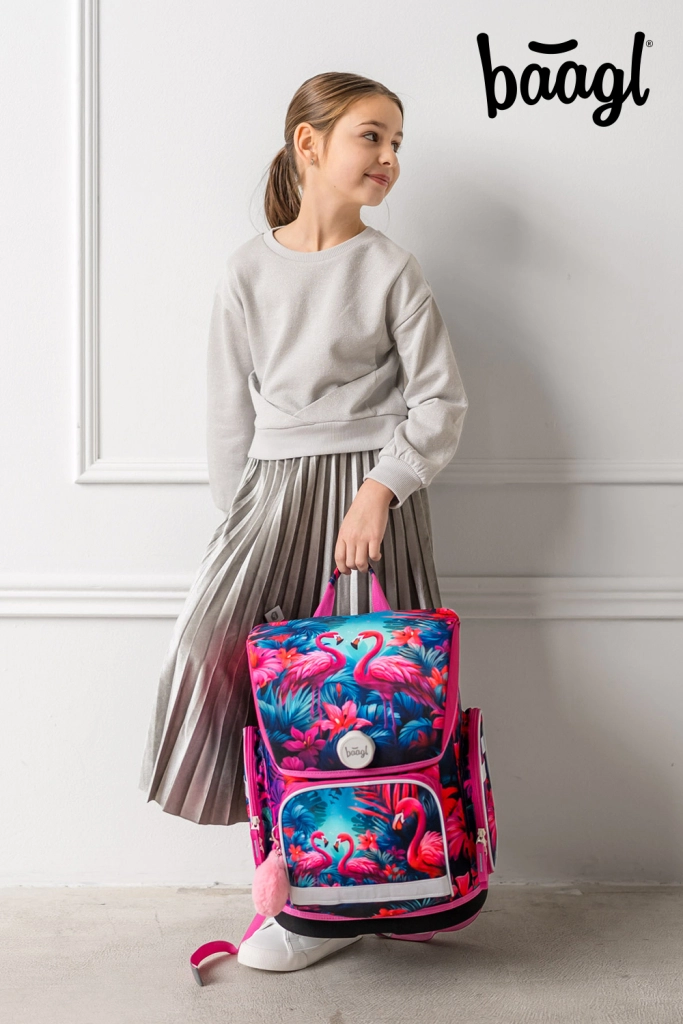 Az egységes PLAMINGÓK dizájnú teljes iskolai felszerelés minden kisdiákot és szülőt örömmel tölt el. Az ERGO ADJUSTABLE SYSTEM állítható rendszerű ergonomikus iskolatáska együtt nő a gyermekkel, párnázott hátfallal, állítható váll-, mell- és oldalpántokkal, valamint megbízható Fidlock mágneses csattal a könnyű és gyors nyitáshoz. A vízlepergető anyagok, a stabil talp és a fényvisszaverő elemek növelik a tartósságot és a biztonságot a mindennapi használat során.