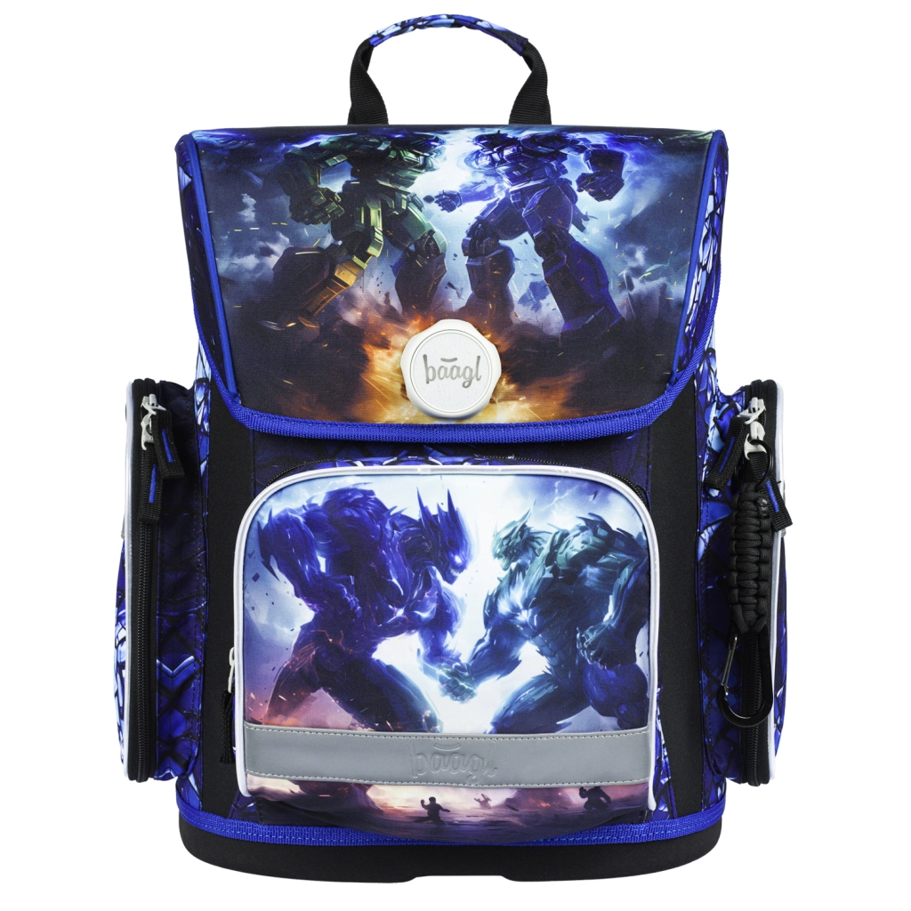 A BAAGL Robotok iskolai szett mindent megad a gyerekeknek az iskolához és a szakkörökhöz – egységes, robotcsata motívumú dizájnban. A fő sztár a masszív, könnyű és ergonomikus aktatáska az ERGO ADJUSTABLE SYSTEM állítható rendszerrel, amely együtt nő a gyermekkel és segít a teher helyes elosztásában. A Fidlock mágneses zár villámgyors nyitást és automatikus zárást tesz lehetővé.