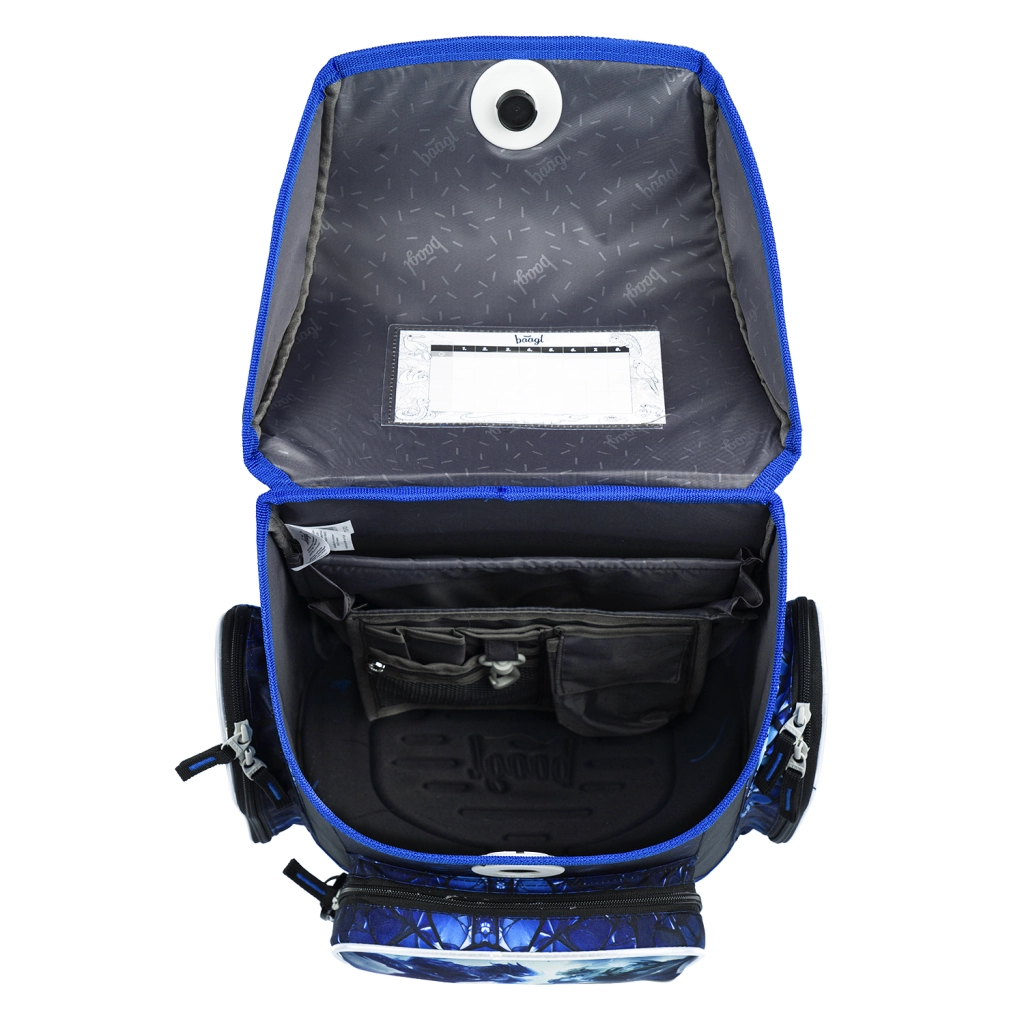 A belső okos tagolás szervezővel, átlátszó órarendzsebbel, szigetelt elülső zsebbel és két oldalzsebbel rendben tart mindent. A szettet kiegészíti az egyszintes tolltartó (töltet nélkül) YKK cipzárral, a strapabíró összehúzható hátizsák karabinerrel az aktatáskához, a könnyen tisztítható gyerek kötény két zsebbel, valamint a nyakba akasztható pénztárca névjeggyel és biztonsági kioldóval ellátott zsinórral.