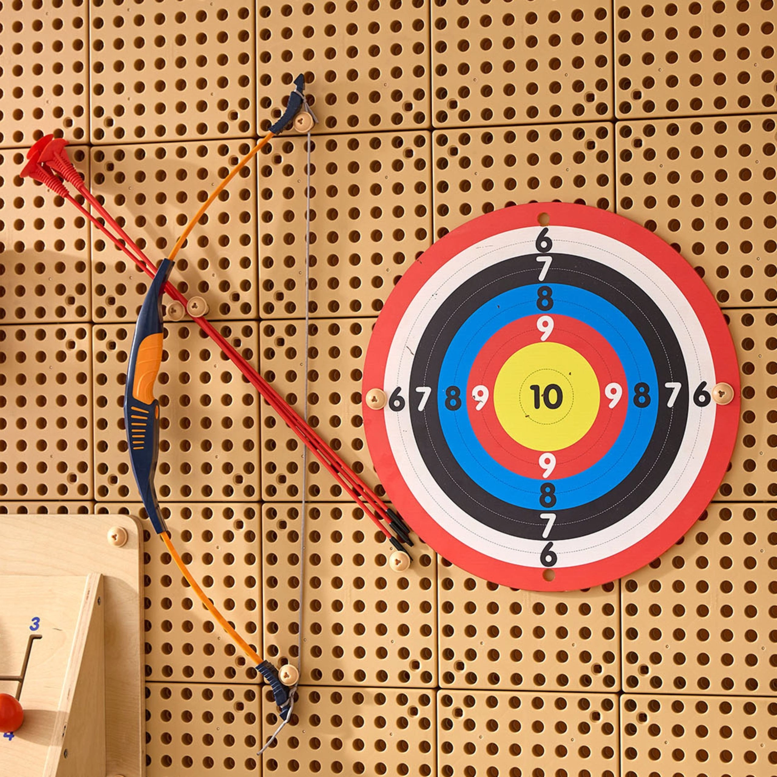 A készlet teljes mértékben kompatibilis a STEM táblákkal, és könnyen rögzíthető perforált falakra, így gyorsan okos játéksarkot alakíthat ki otthon vagy az óvodában. A könnyű műanyag íj a kis kezekhez formázott, és fejleszti a finom- és nagymotorikát, a kéz–szem koordinációt, valamint a szociális készségeket páros vagy kiscsoportos játék során.