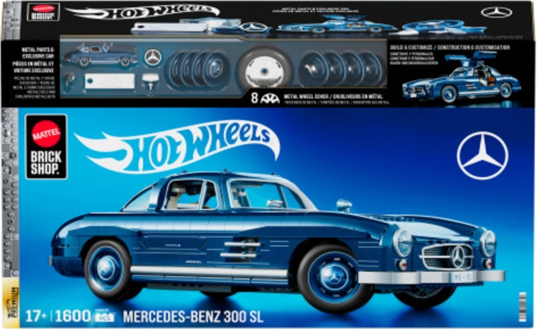 Építsd meg az ikonikus Mercedes‑Benz 300 SL modellt 1:12 méretarányban, a HOT WHEELS Brick Shop sorozat 1600 darabjából. A modell kék karosszériája, számos mozgó eleme (nyitható ajtók, motorháztető, csomagtartó, kormányozható kerekek) és a fém alkatrészek (felnik, tükrök, logó) a megjelenés finomhangolásához igazán figyelemfelkeltő. A csomag része egy gyűjtői mini modell 1:64 és egy elegáns csomagolás, amely ideális ajándéknak.