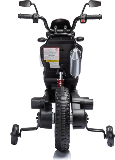 A biztonságot az oldalsó kerekek növelik a stabilitásért, valamint a fokozatmentes indulás, amely megszünteti a rángatózó elindulást. Az első LED lámpa javítja a láthatóságot és valósághű megjelenést kölcsönöz. A kényelmes, ökobőrből készült ülés (35×14×5 cm) és az átgondolt ergonómia teszi ezt a gyermek motort remek társsá a mindennapi kiruccanásokhoz.