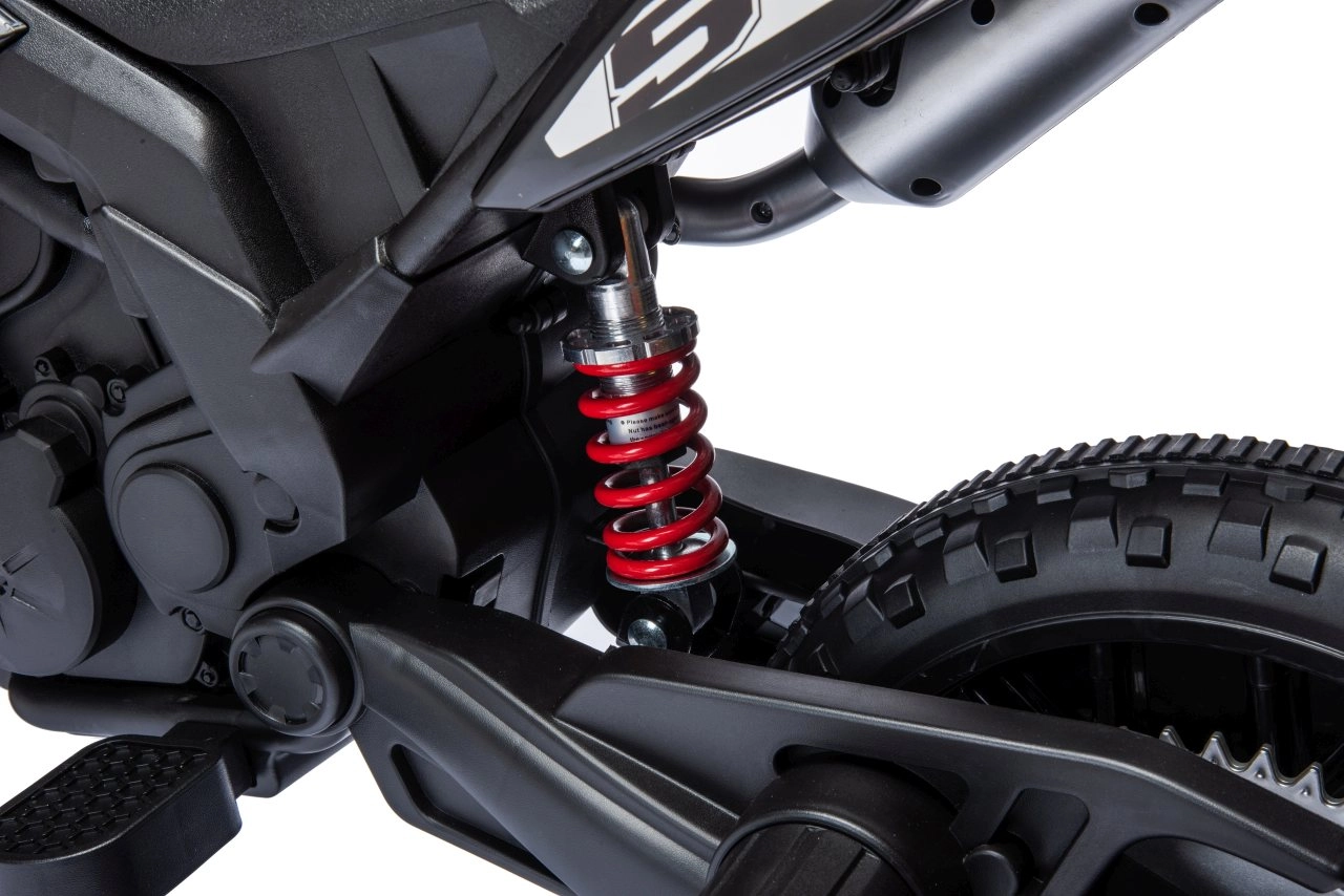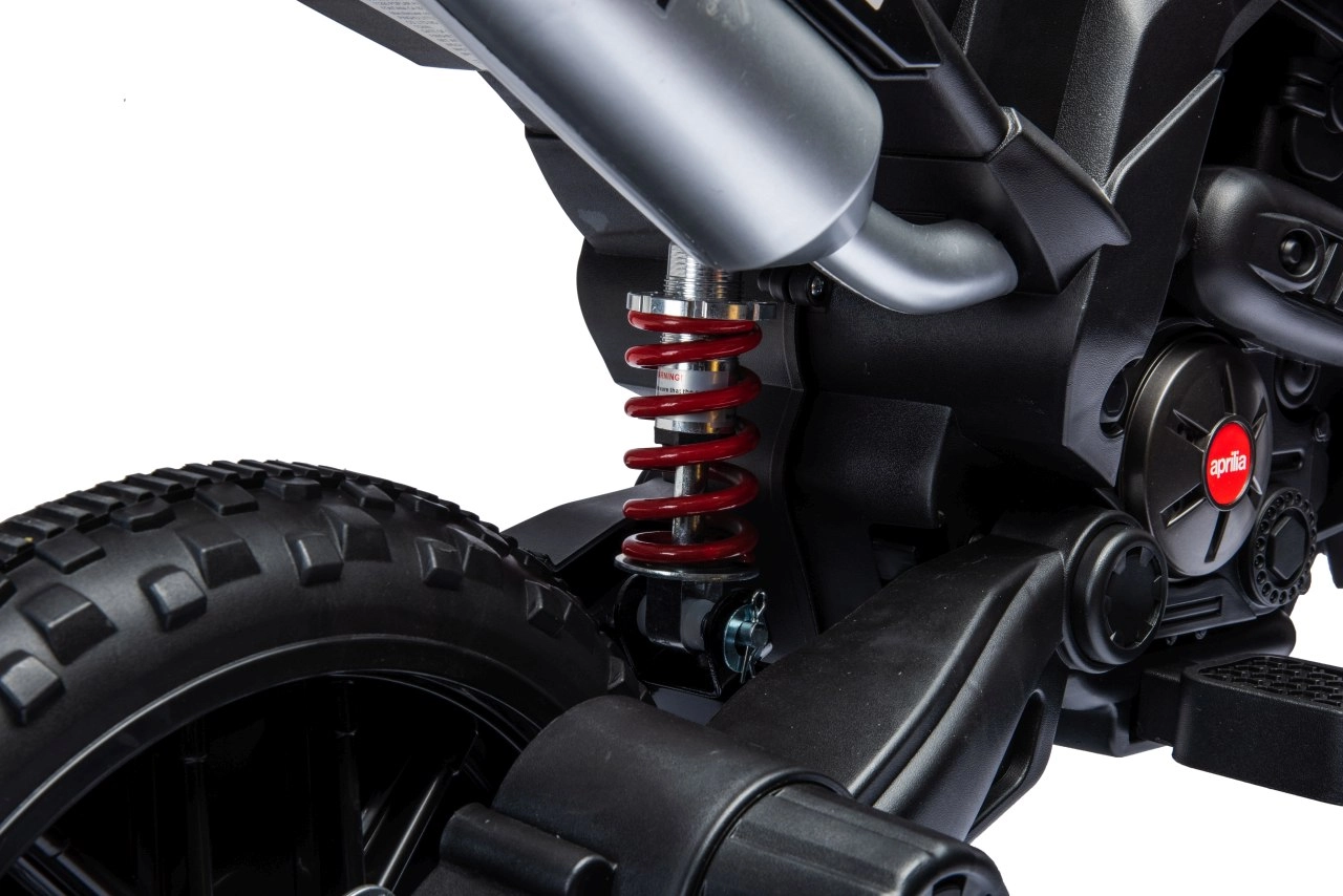 Az APRILIA RX motor ideális választás a kétkerekűek kis rajongóinak. A erős, dupla 2×35 W-os motornak és a 12 V 7 Ah akkumulátornak köszönhetően a gyerekek sima és szórakoztató utazást élvezhetnek. Az EVA gumik csendes futást és jobb tapadást biztosítanak, míg a hátsó felfüggesztés kisimítja az egyenetlenségeket és növeli a kényelmet.