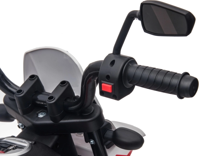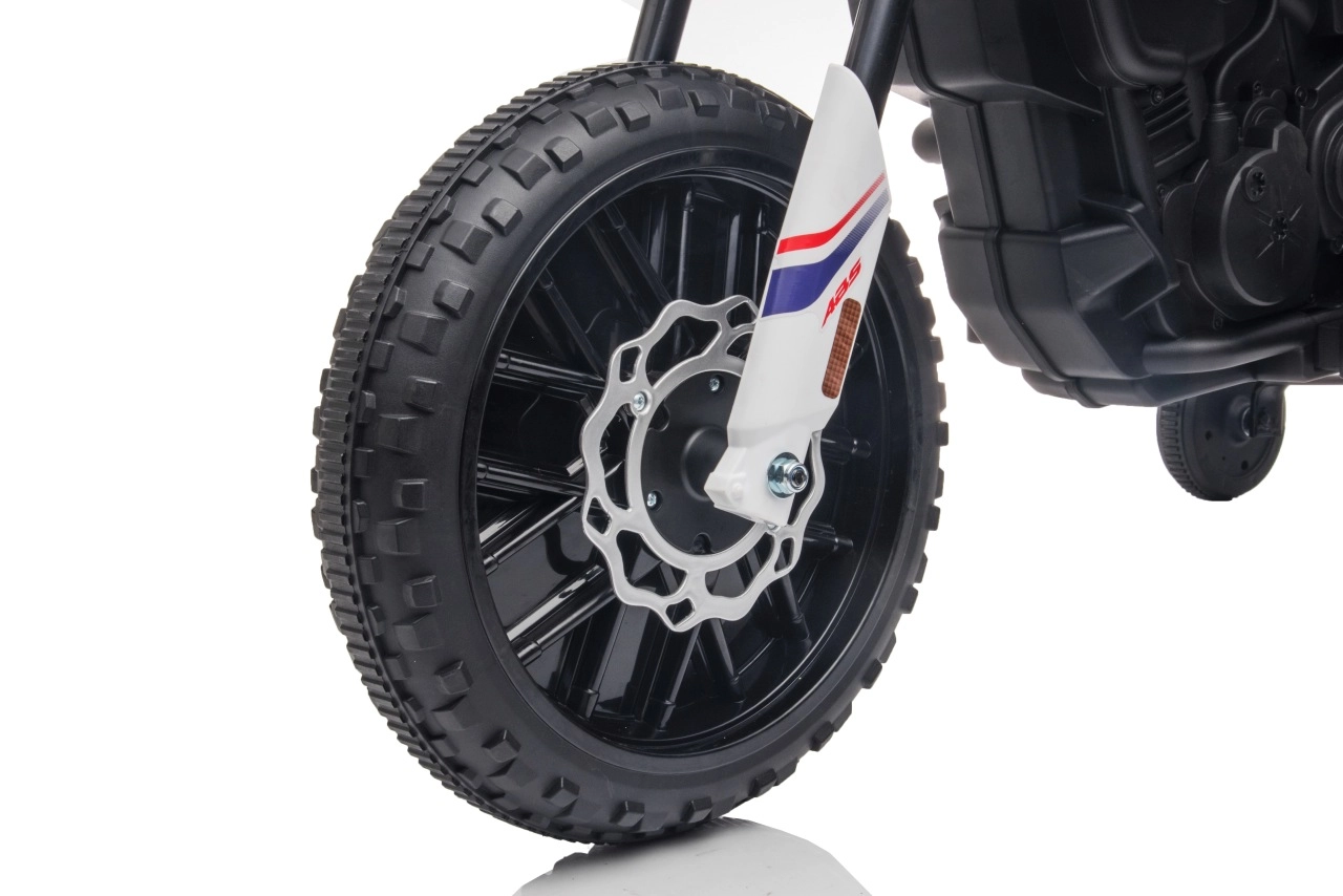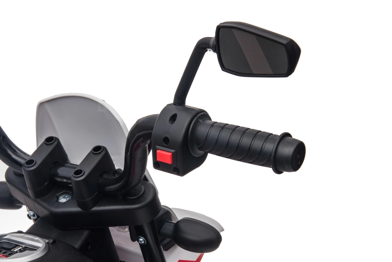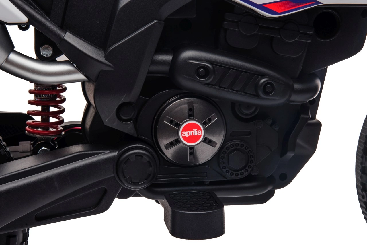 Ajándékozza meg a gyerekeket első motoros élményeikkel a fehér APRILIA RX elektromos motorral. A masszív felépítés, a széles gumik és a stabilizáló segédkerekek támogatják a kezdő motorosok magabiztosságát és egyensúlyát. A csendes EVA kerekek, a hátsó lengéscsillapító és a sima indulás kényelmes és biztonságos vezetést nyújt otthon és a szabadban is.