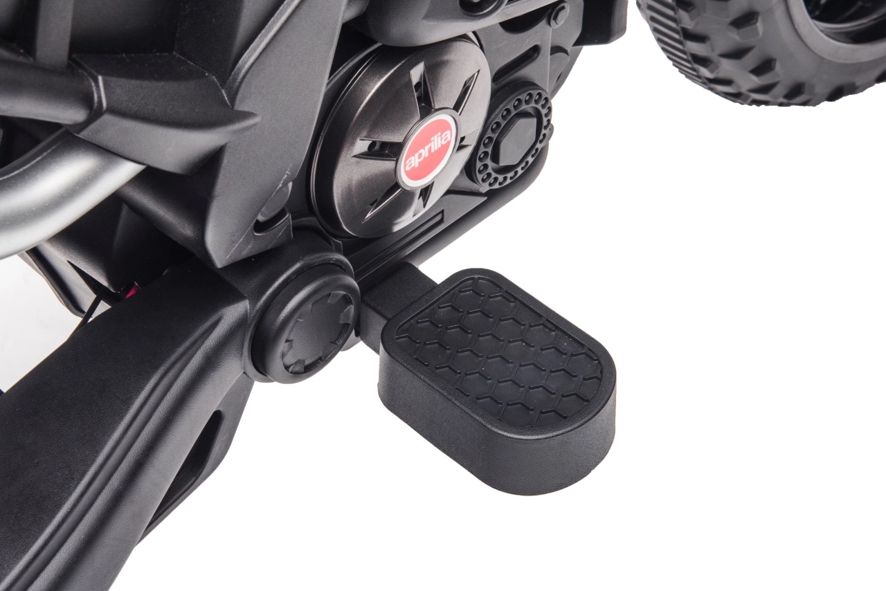 A stílusos APRILIA RX gyerek elektromos motor valósághű megjelenésével, erős 2x35 W hajtással és biztonságos oldalsó segédkerekekkel nyűgözi le a kis motorosokat. 12 V 7 Ah akkumulátorral a hosszabb menetekhez, EVA kerekekkel a csendes és kényelmes futásért, LED első lámpákkal, valamint multimédiás audio panellel MP3/USB/Bluetooth csatlakozással. A kényelmes ökobőr ülés és a hátsó rugós felfüggesztés az egyenetlen felületen is komfortot biztosít.