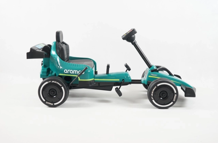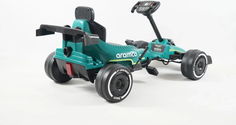 Stílusos, gyermekeknek szánt gokart, amelyet a ASTON MARTIN márka inspirált; masszív szerkezettel, sima futással és kiváló irányíthatósággal nyűgöz le. Lánchajtással és teljes láncvédelemmel, csapágyazott EVA kerekekkel a csendes haladáshoz, kézifékkel, valamint előre/hátra menet és szabadonfutó funkcióval rendelkezik. A 25 kg maximális teherbírás és a sportos, profilozott ülés kényelmet és biztonságot nyújt.