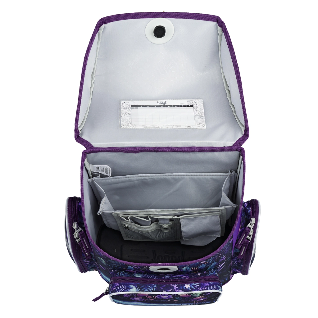 A Fidlock mágneses zár gyors kezelést tesz lehetővé, az első, szigetelt zseb, a két oldalsó kulacstartó zseb és a belső rendszerező órarenddel átláthatóvá teszik a tartalmat.