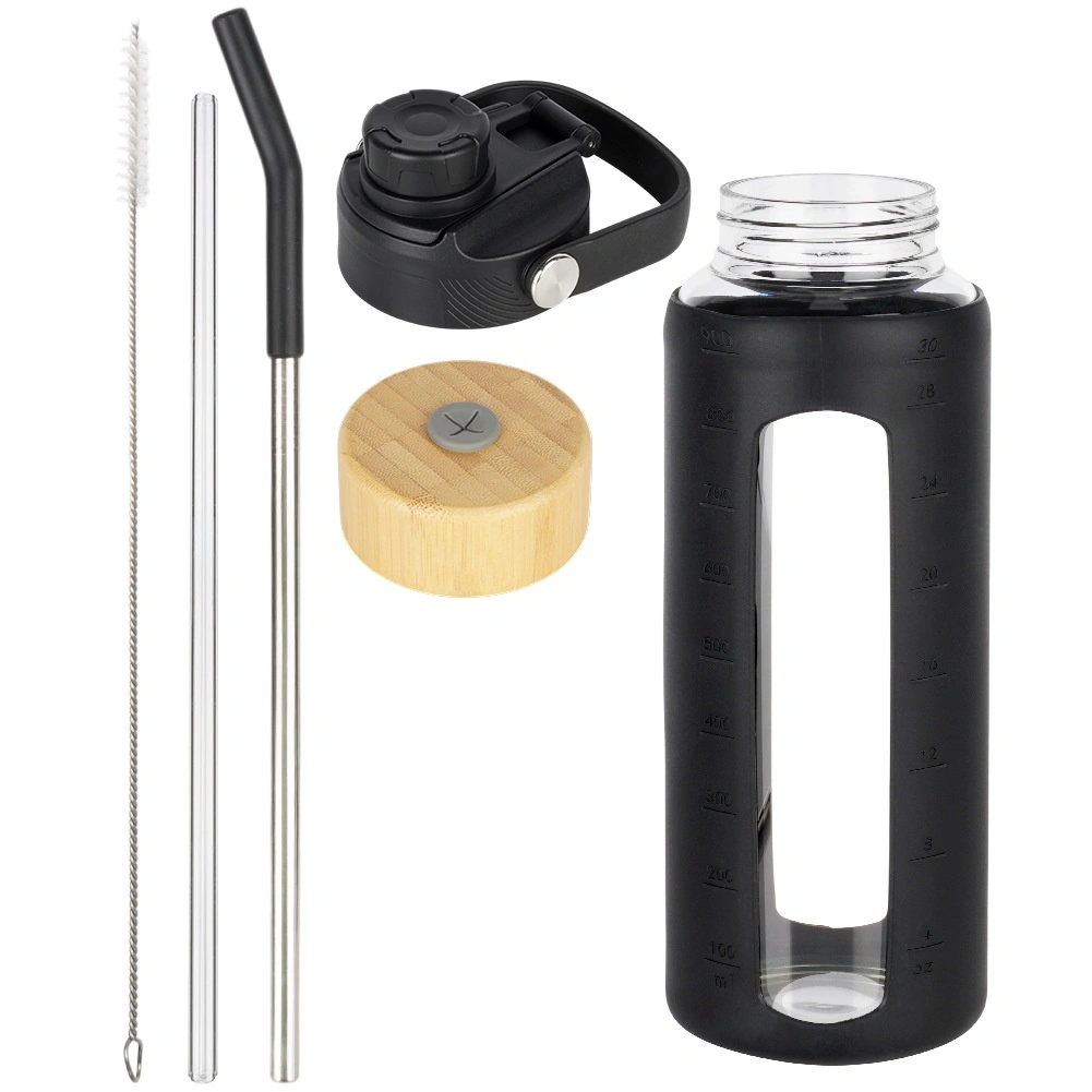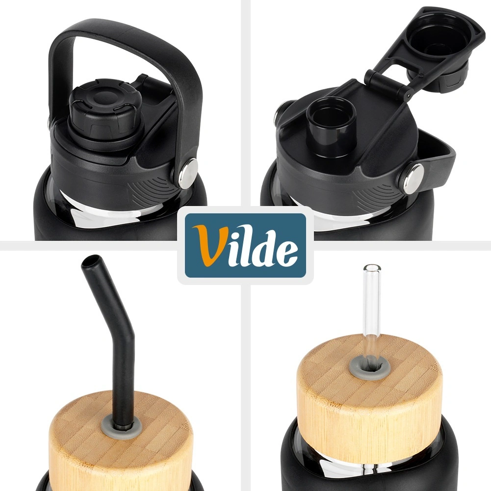 A csomag kétféle zárást tartalmaz: sportkupak szopókával és füllel iváshoz útközben és az edzőteremben, valamint bambusz kupak szívószál nyílással. A dobozban találsz még egy rozsdamentes acél szívószálat szilikon véggel, egy üveg szívószálat és egy tisztítókefét. A palack a szilikon tok nélkül mosogatógépben mosható. Remek vízhez, limonádéhoz, jeges teához és gyümölcsös ízesített italokhoz.
