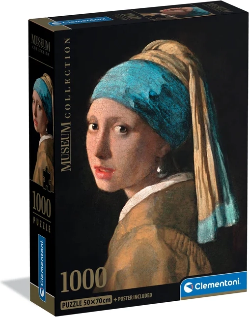 Fedezze fel a művészet varázsát a Clementoni Museum Collection sorozat kirakóival. Az ikonikus Lány gyöngy fülbevalóval motívum 1000 darabos kiszerelésben kiváló minőségű nyomattal, precíz illesztéssel és elegáns felülettel. Összeállítás után körülbelül 50 × 70 cm méretű kép készül, amely ideális keretezéshez és az otthon díszítéséhez.