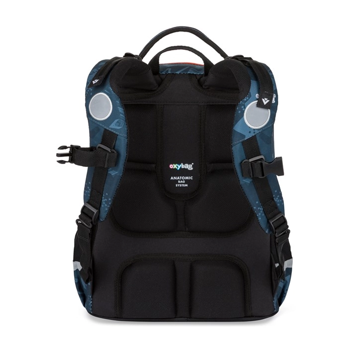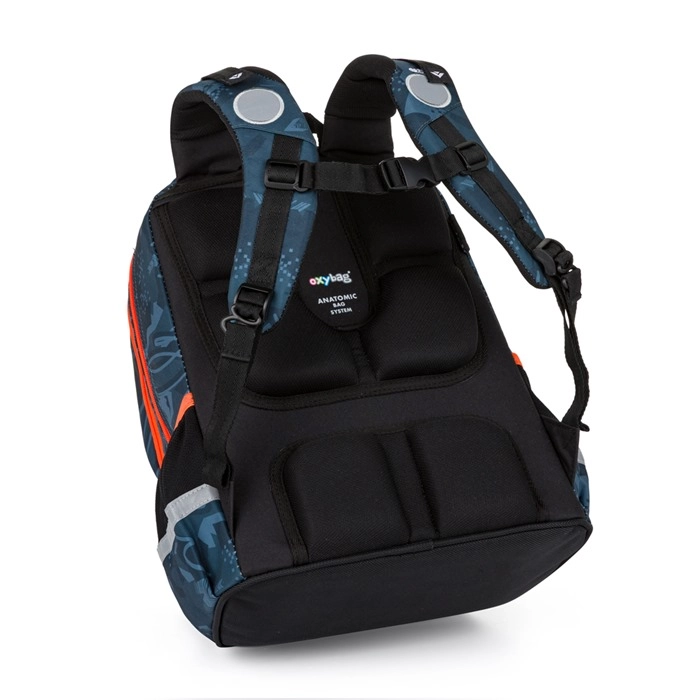 Az OXY Jumper Auto iskolai szett remek választás kisiskolásoknak, akik megbízható felszerelést szeretnének dinamikus autós dizájnnal. A hátizsák a továbbfejlesztett anatómiailag formázott hátpanelnek és a rugózott, állítható vállpántoknak köszönhetően nagyobb terhelésnél is kényelmesen hordható. A mellpánt és a húzóhevederek segítenek az egyenletes súlyelosztásban és javítják a stabilitást járás közben.