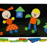 Mágneses tábla és fa darabkák a készlet kulcsfontosságú részei. Ezek a mágneses darabkák lehetővé teszik, hogy a gyerekek különböző motívumokat és történeteket állítsanak össze. A készlet nem alkalmas 3 év alatti gyermekek számára, mivel apró részeket tartalmaz, amelyek lenyelés veszélyt jelentenek.