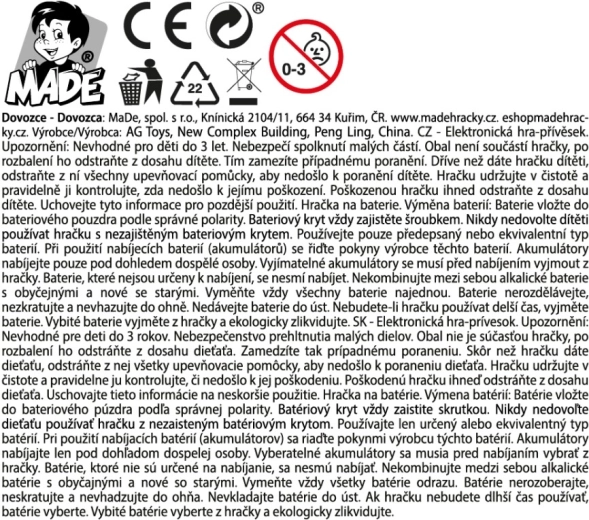A játék azonnal használatra kész a két darab LR44 elemmel, amelyek a csomag részét képezik. Remek választás otthoni és szabadtéri játékhoz, utazáshoz, várótermekbe vagy gyereksarkokba.