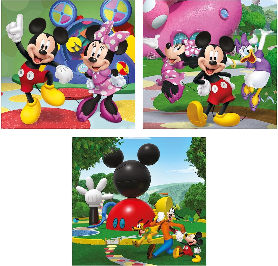 Fedezzétek fel együtt a kirakózás örömét a CLEMENTONI MICKEY EGÉR KLUBHÁZA témájú puzzle-jeivel. A három kirakó mindegyike azonos darabszámú és megegyező formátumú, így a gyerekek magabiztosságot szereznek, és lépésről lépésre fejleszthetik készségeiket. A minőségi karton és a precíz nyomtatás tartósságot és színtartást biztosít ismételt kirakás után is.