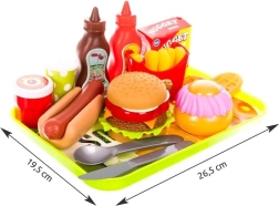 Teljes „gyorséttermi” felszerelés hamburgerrel, hot doggal, sült krumplival, itallal és desszertekkel. A gyerekek összeállíthatják saját menüjüket és megmozgathatják a fantáziájukat.