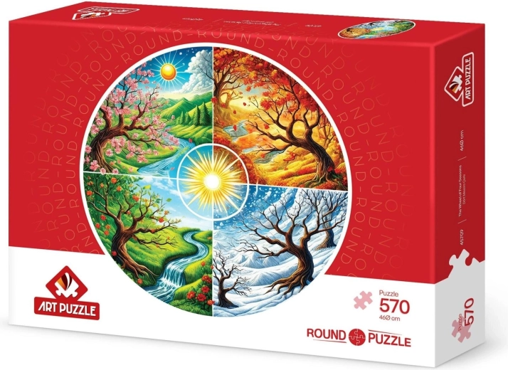 Élvezze a kirakás egyedülálló élményét ezzel a kerek puzzle-lel, amely mind a négy évszakot egy harmonikus képpé egyesíti. A 570 precízen vágott darabnak köszönhetően a kirakás folyamatos, szórakoztató, és megfelel kissé haladóknak és a lelkes puzzle-rajongóknak is.
