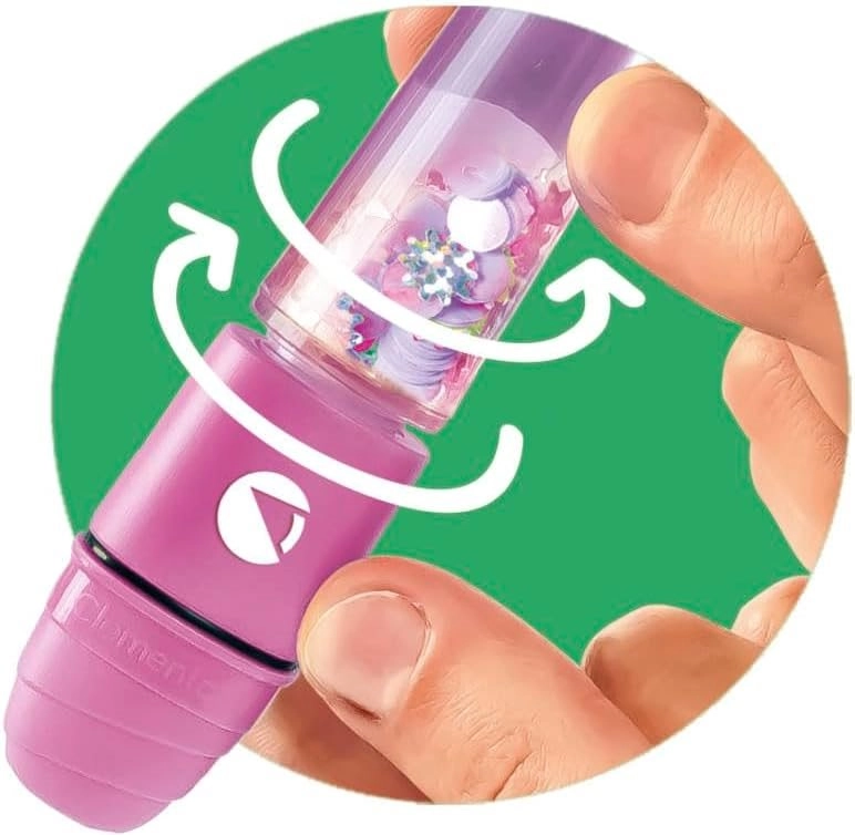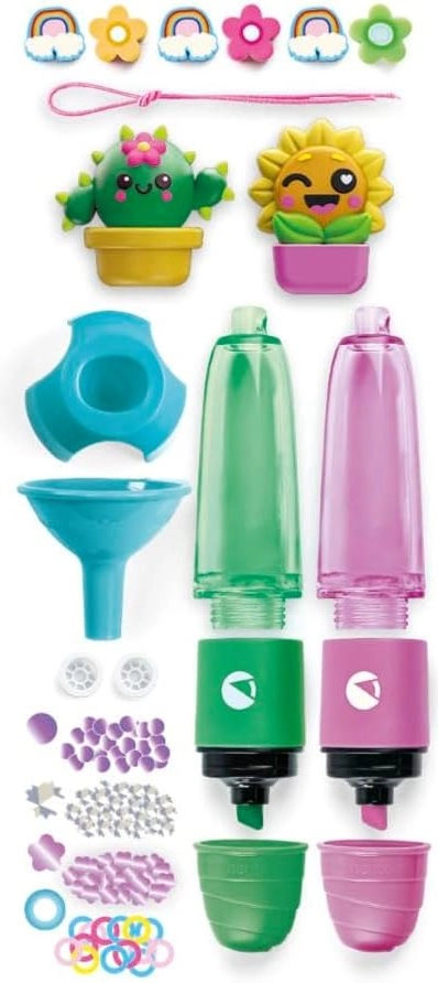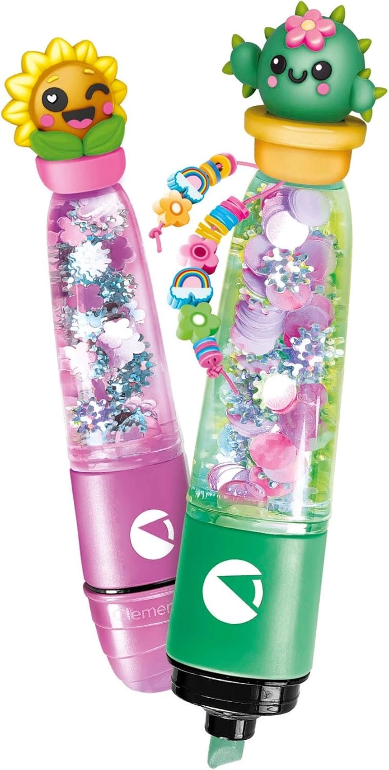 Ezzel a készlettel a gyerekek két egyedi kiemelőt állíthatnak össze és díszíthetnek, amelyek átlátszó testeibe csillámokat, gyöngyöket és úszó díszeket tehetnek. A kaktusz és napraforgó alakú cuki topperek minden írást játékká, a kiemelést pedig stílusos szórakozássá varázsolnak.