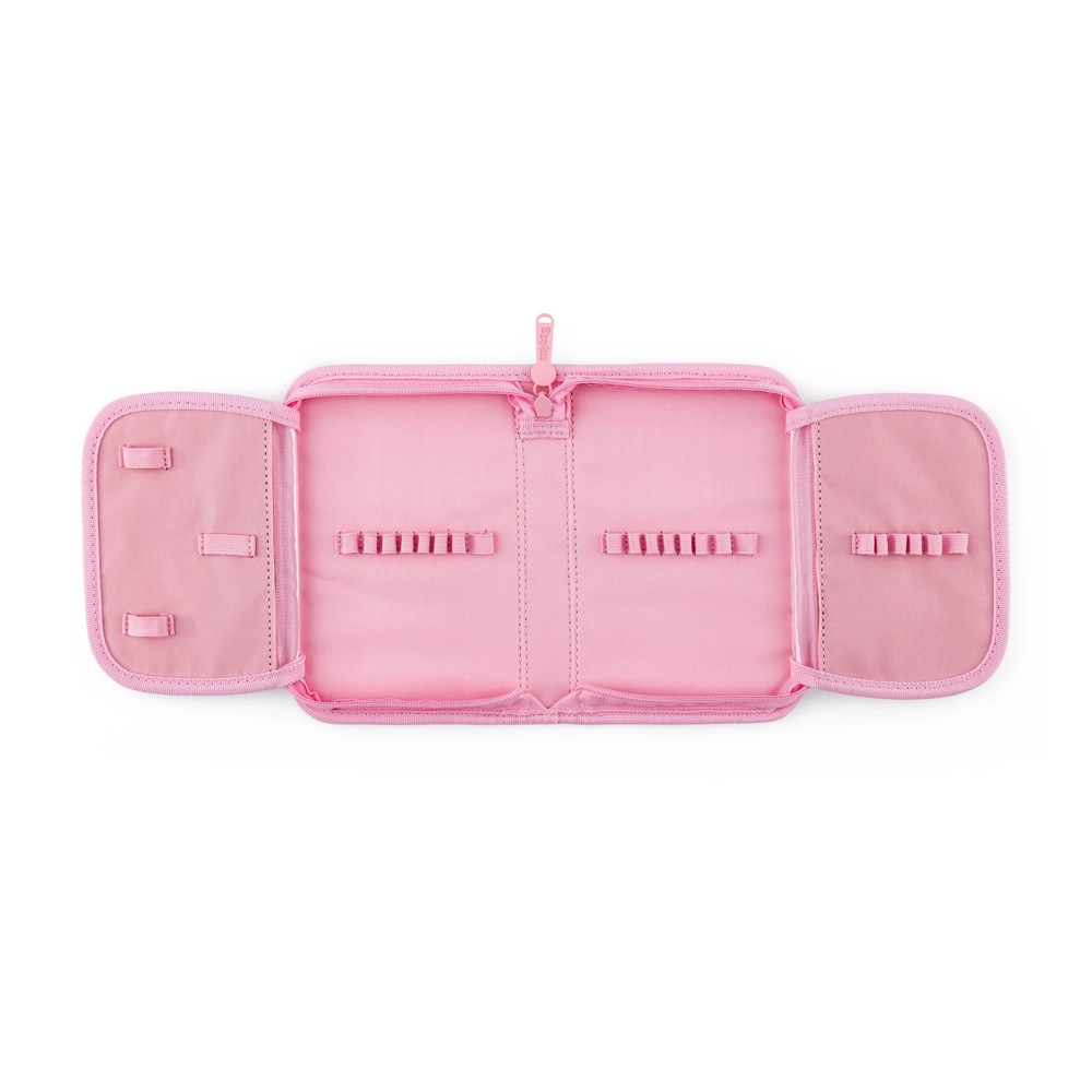 Belül 25 erős gumis hurkot találsz ceruzákhoz, tollakhoz és egyéb apróságokhoz. A füleken átlátszó fóliák kaptak helyet az órarend vagy jegyzetek számára. A tartós textil kivitel és a körbefutó cipzár védi a tartalmat és megkönnyíti a hozzáférést.