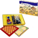 Detoa játékgyűjtemény teljes spektrumát kínálja a kedvelt játékoknak minden generáció számára. Tartalmazza a Ki nevet a végén?, a dominó, a kocka, a sakk, a dáma, a bolhás játék és a malom játékokat stílusos fa komponensekkel és kemény kartonból készült játéktáblákkal.