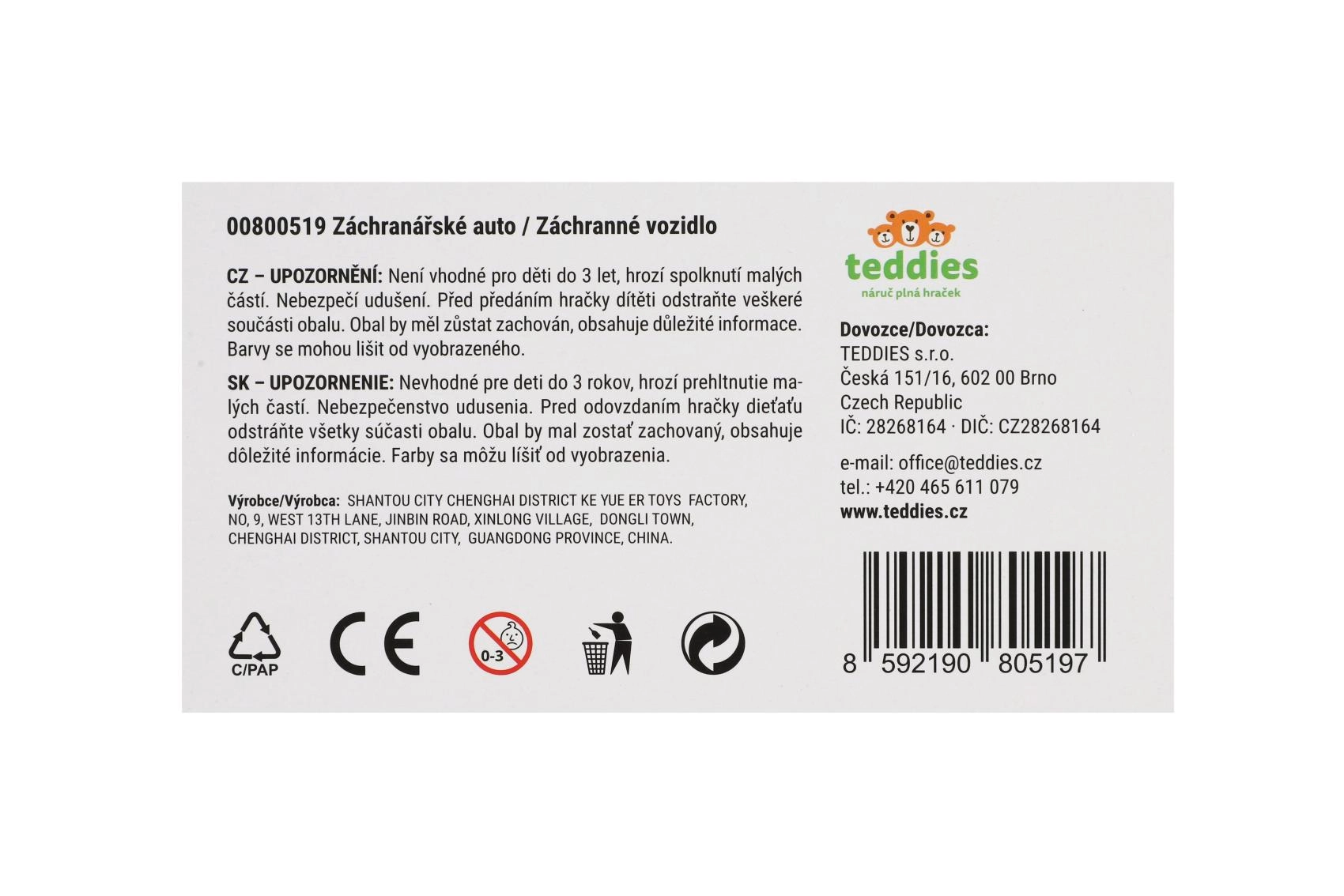 - Valósághű kivitel Ambulance felirattal és mentőszolgálati motívumokkal