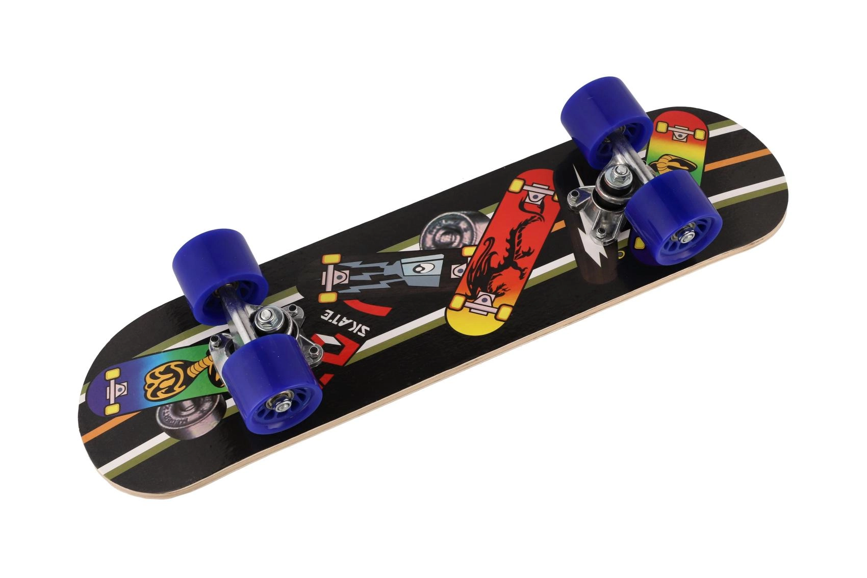 Könnyű és tartós, kb. 60 cm hosszú gyermek gördeszka juharfából, kiváló választás a kis ridereknek. Erős és stabil felépítést, alumínium truckokat és minőségi PU kerekeket kínál a sima, csendes guruláshoz. A kompakt méretnek köszönhetően könnyen irányítható, és kezdőknek valamint haladóbb gyerekeknek is megfelelő. Maximális teherbírása 60 kg, a vonzó grafika pedig 3 színváltozatban érhető el.