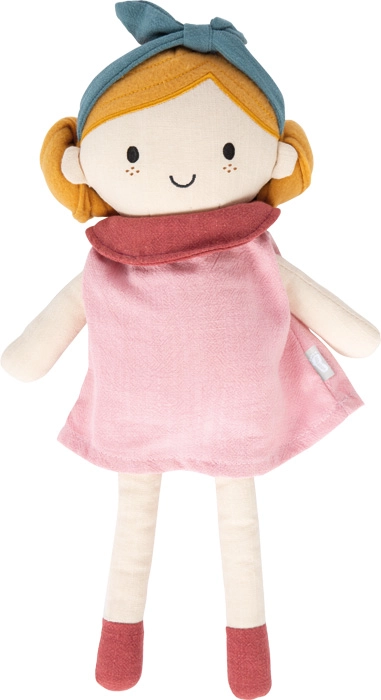 A bájos Lina textilbaba puha, ölelni való és biztonságos már újszülött kortól. A levehető ruhácska, a barátságos arckifejezés és a gyermekkézbe illő méret remekül fejleszti a képzeletet, a finommotorikát és az első szerepjátékokat. Kézzel mosható, így tiszta marad és készen áll a mindennapi kalandokra otthon és útközben is.